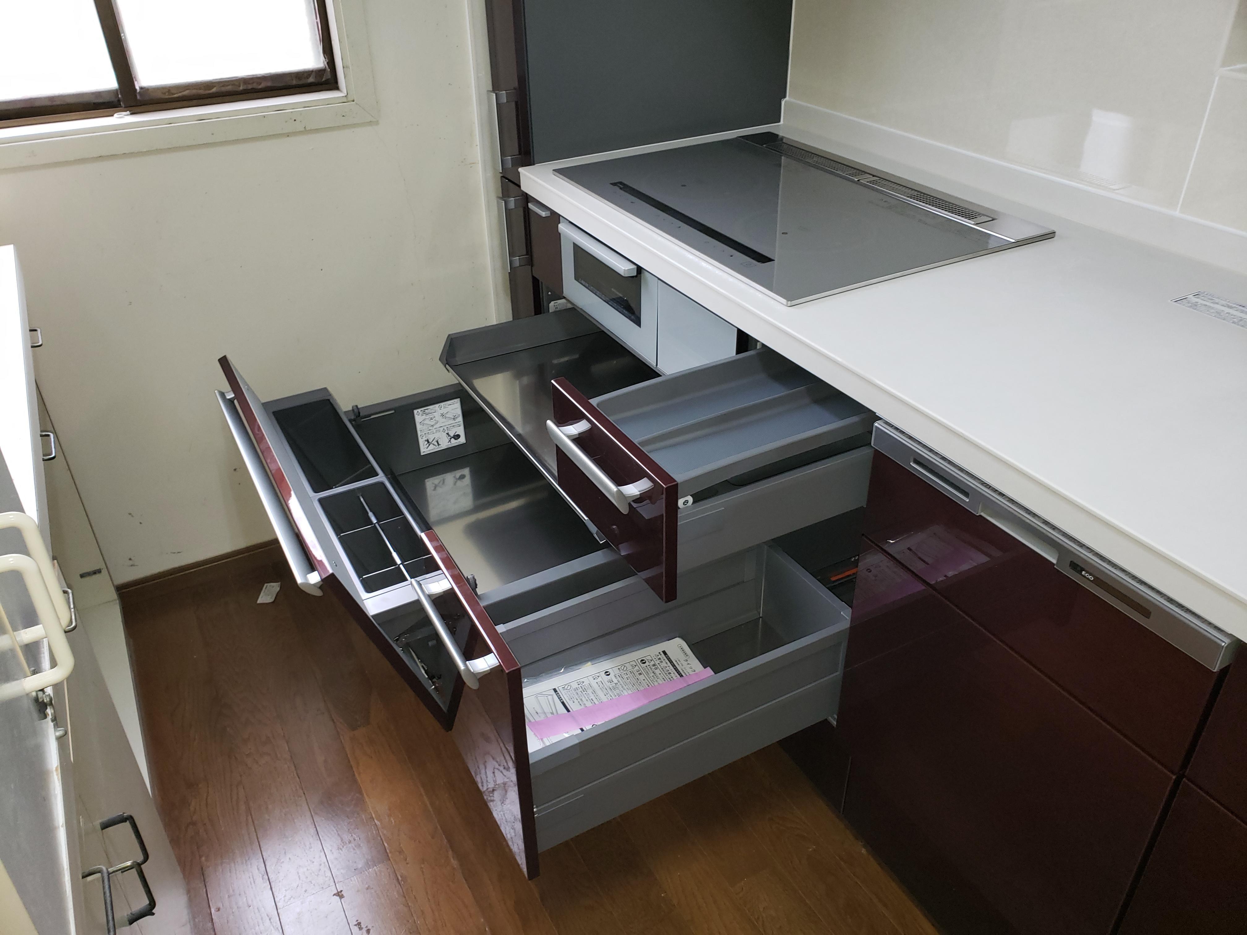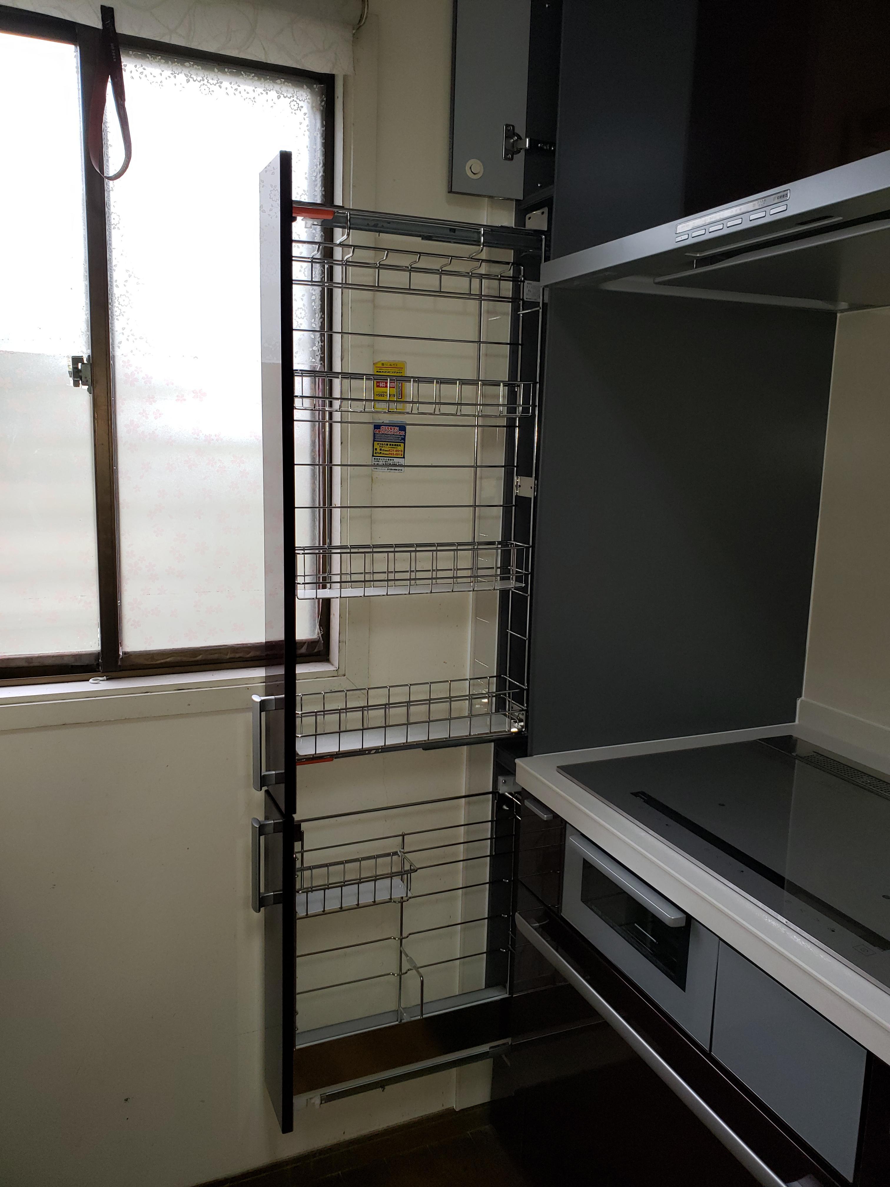 キッチンと玄関扉のリフォームのご依頼を頂きました。キッチンを収納力抜群のLIXIL 「リシェル」に入替えてお掃除もしやすくなりました。