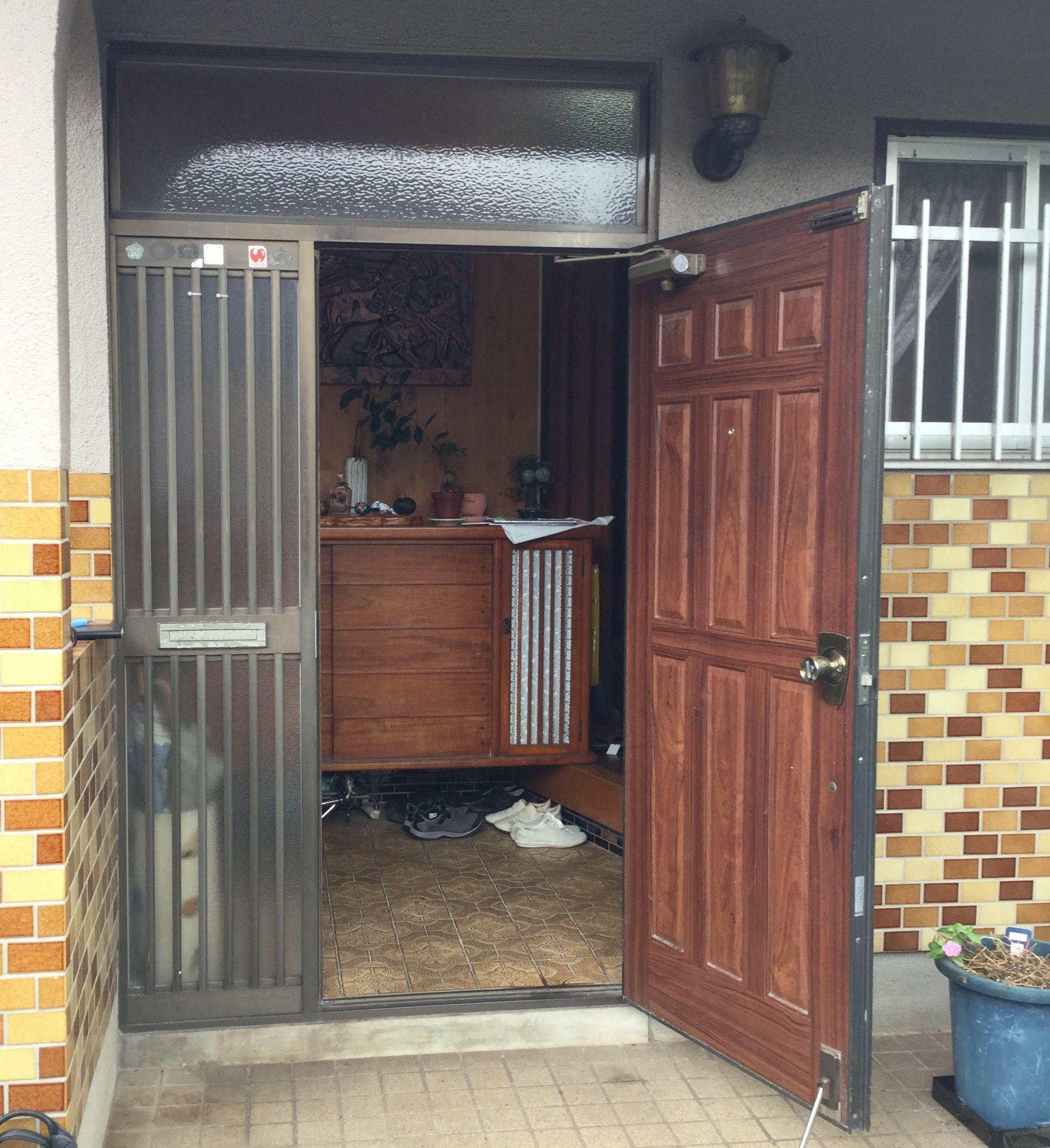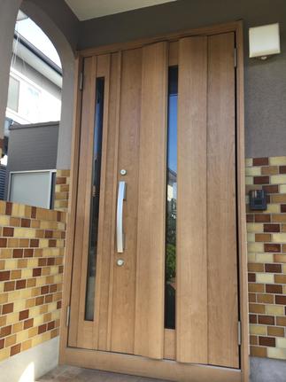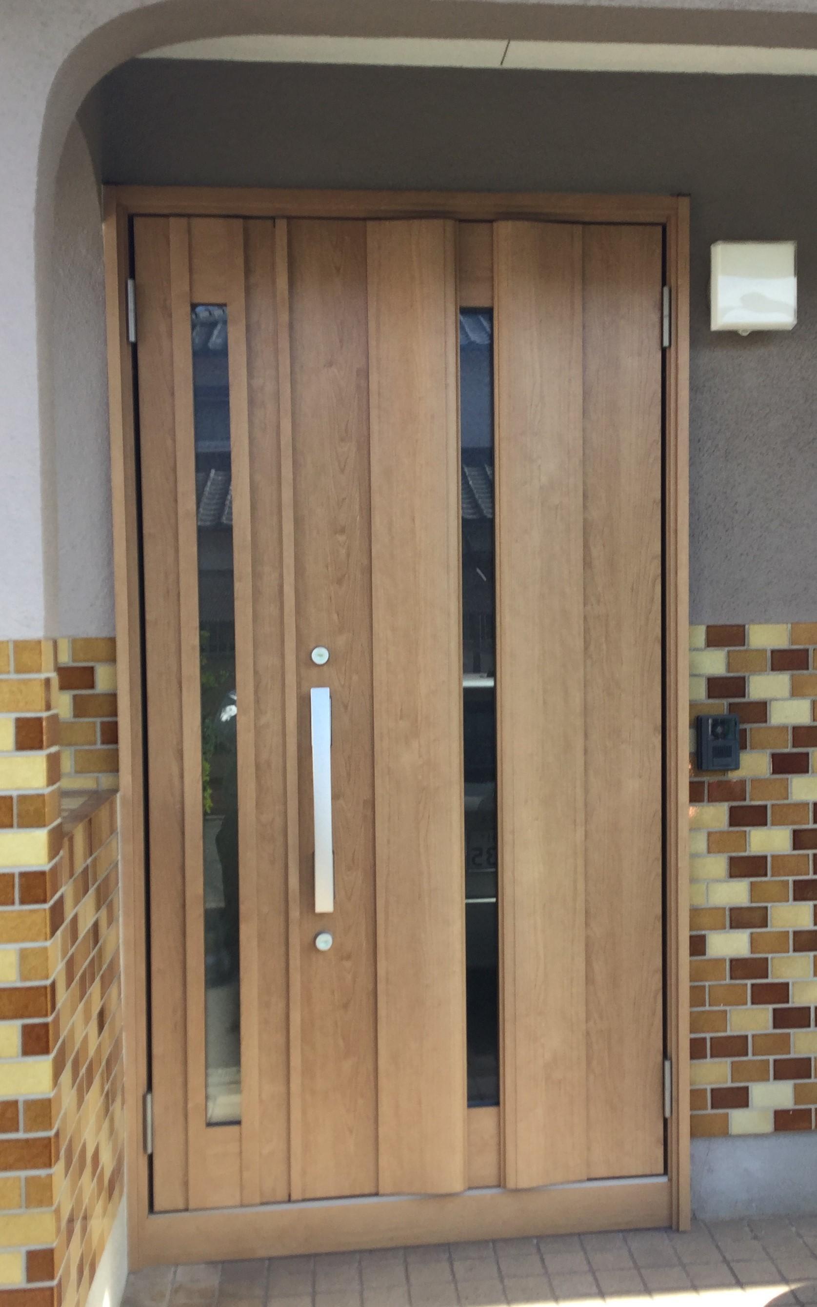 リシェント工事をさせていただきました。上部の欄間や左手の子扉の部分も扉になったことで以前よりもひとまわり大きくなり、明るい玄関になりました。