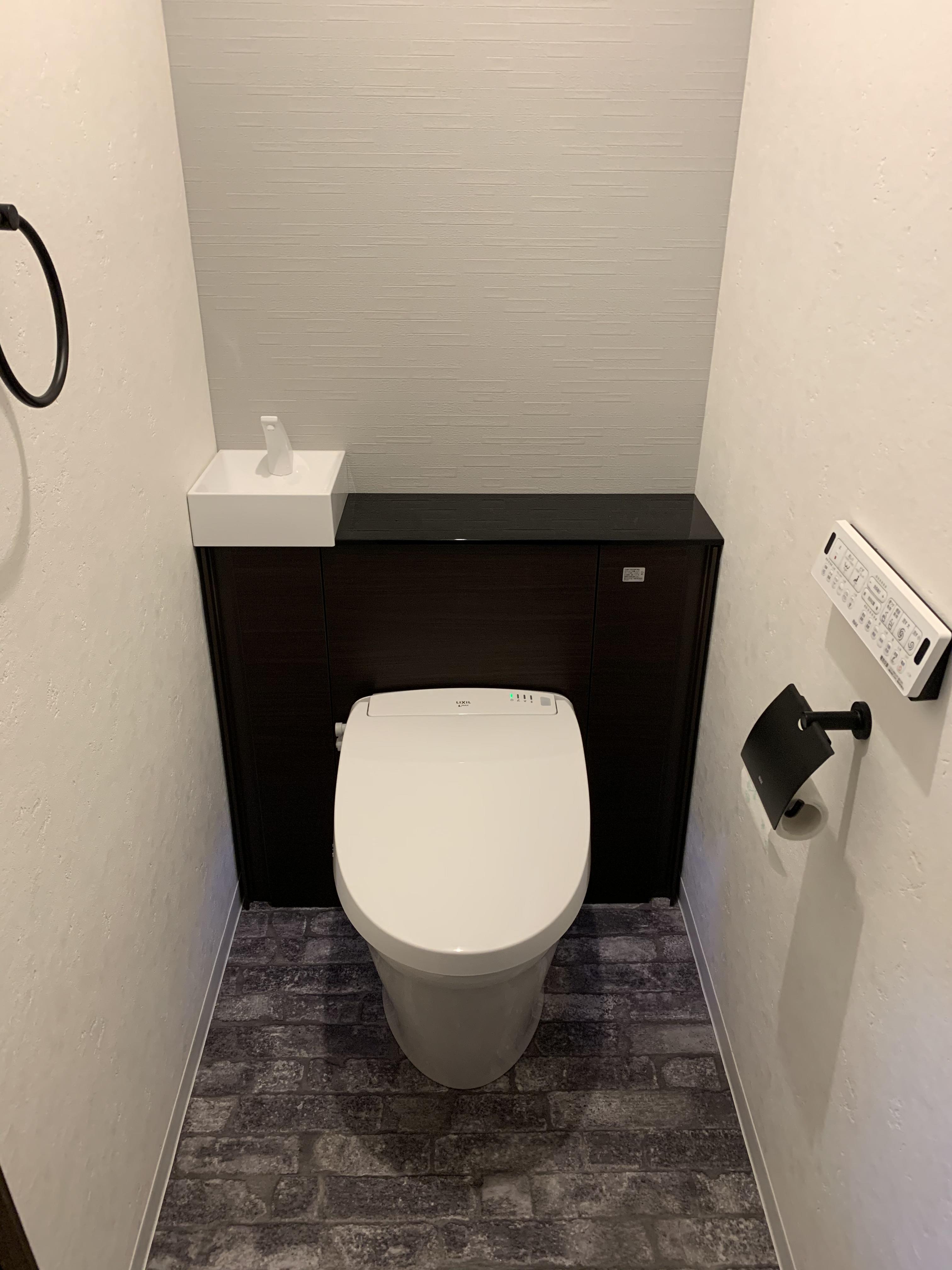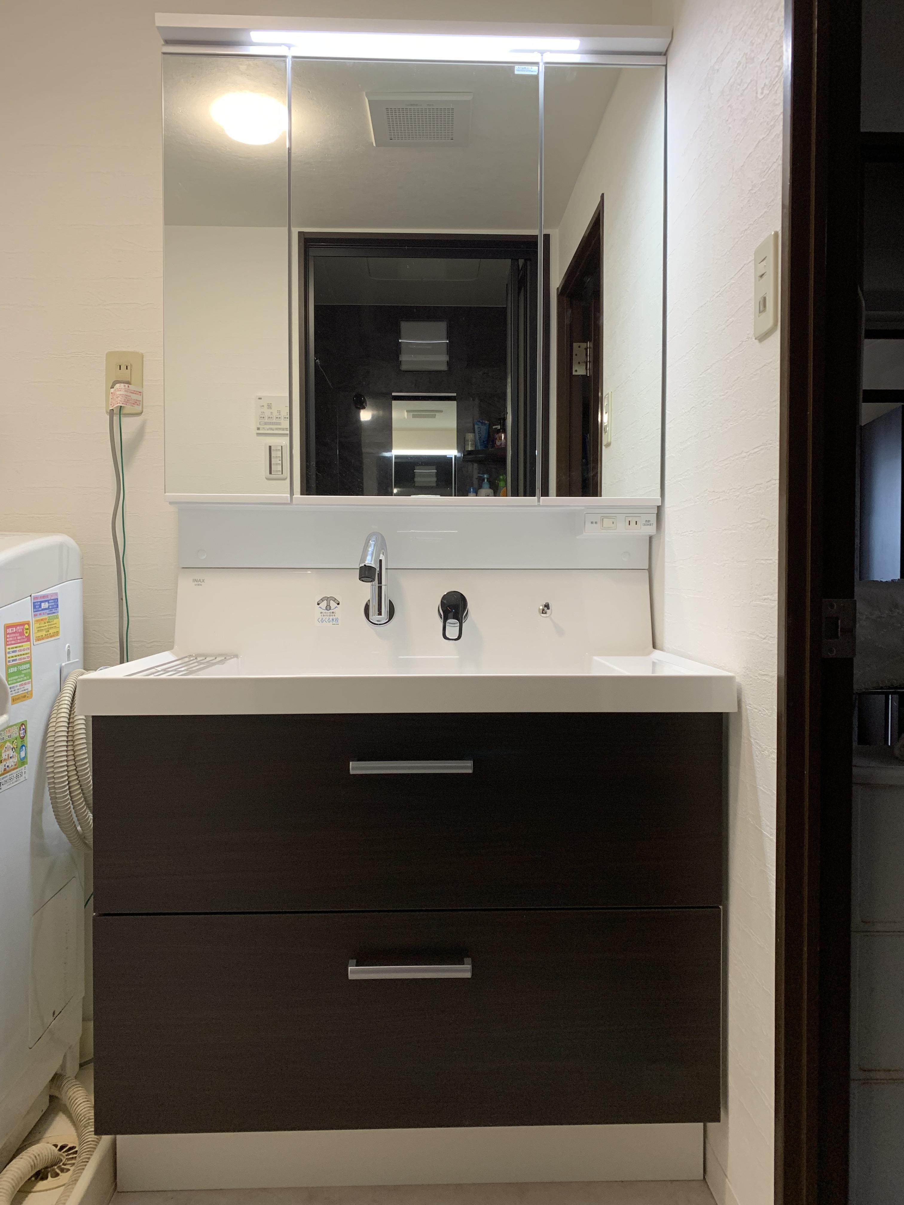 浴室・洗面化粧台・トイレ・クローゼット改修工事をさせていただきました。すべてダーク系の色で統一したので、落ち着いた感じになりました。浴室はLIXILリノビオです。お掃除もしやすく快適なバスルームになりました。