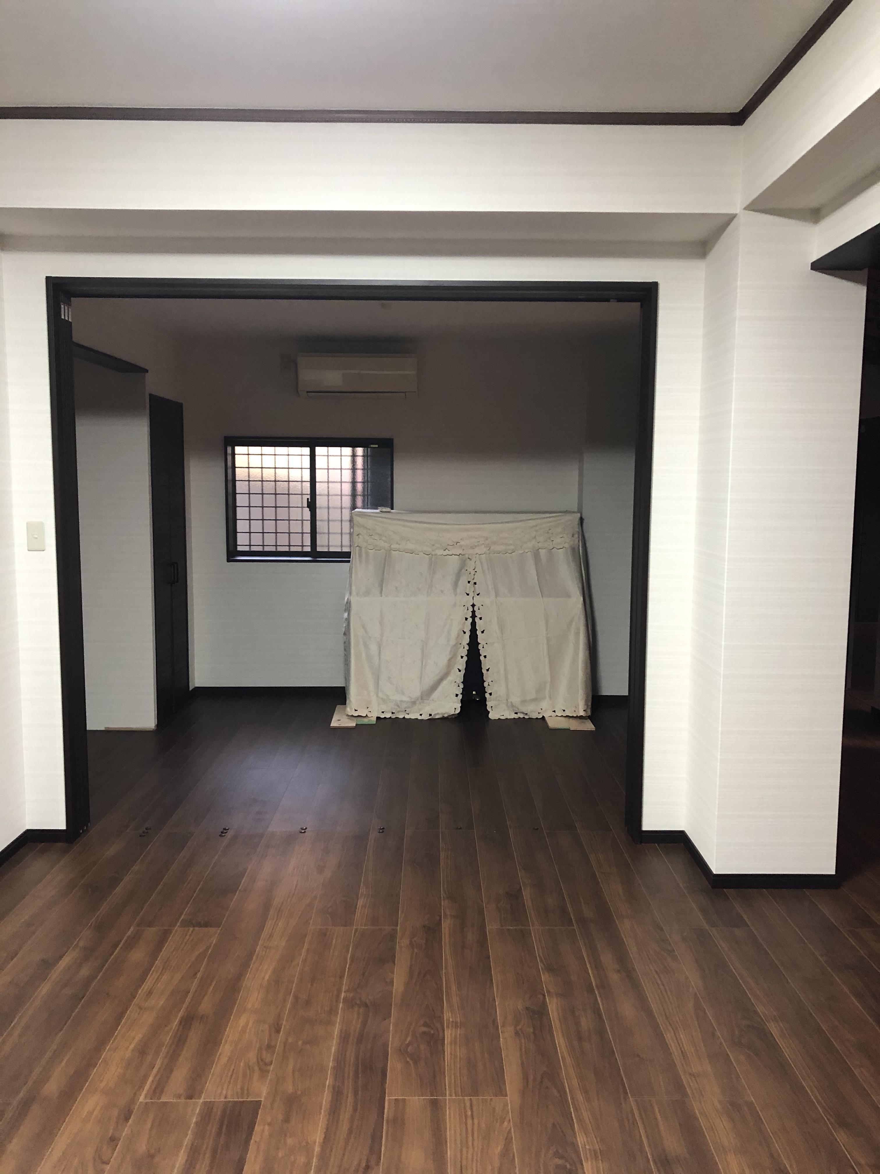 築50年以上の愛着のあるお住まいを新築レベルにリノベーションしました! 全体を白と茶系で統一し明るく落ち着いた空間になりました。 キッチンから部屋の導線を考えて間取りも大きく変更しました。