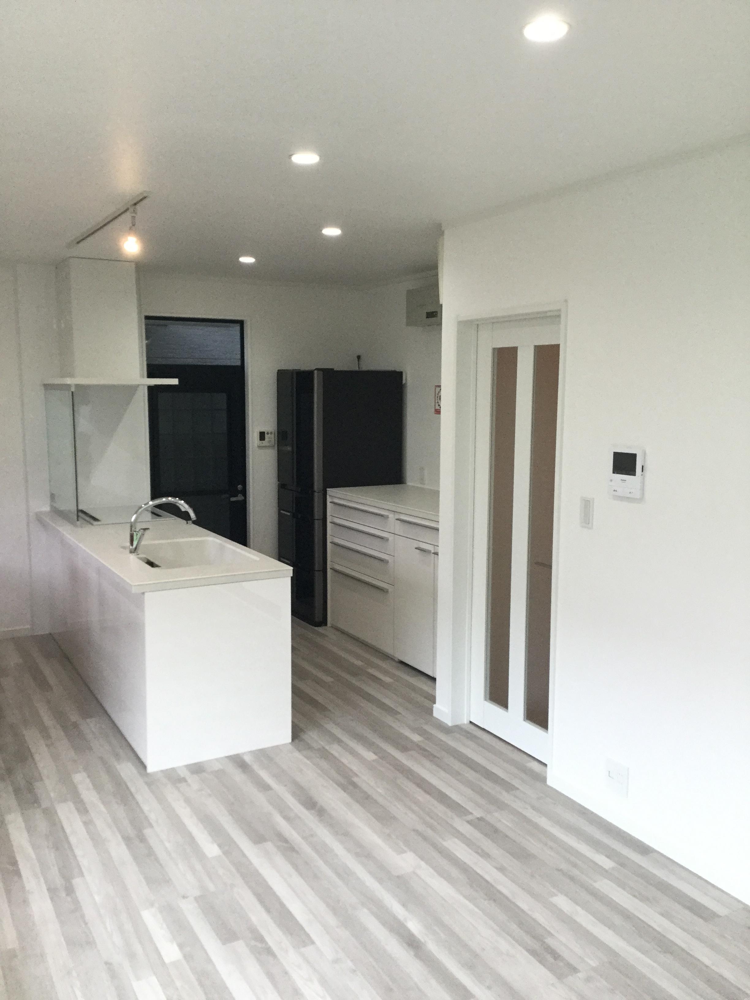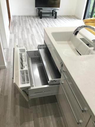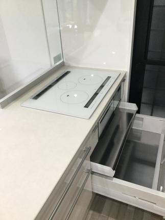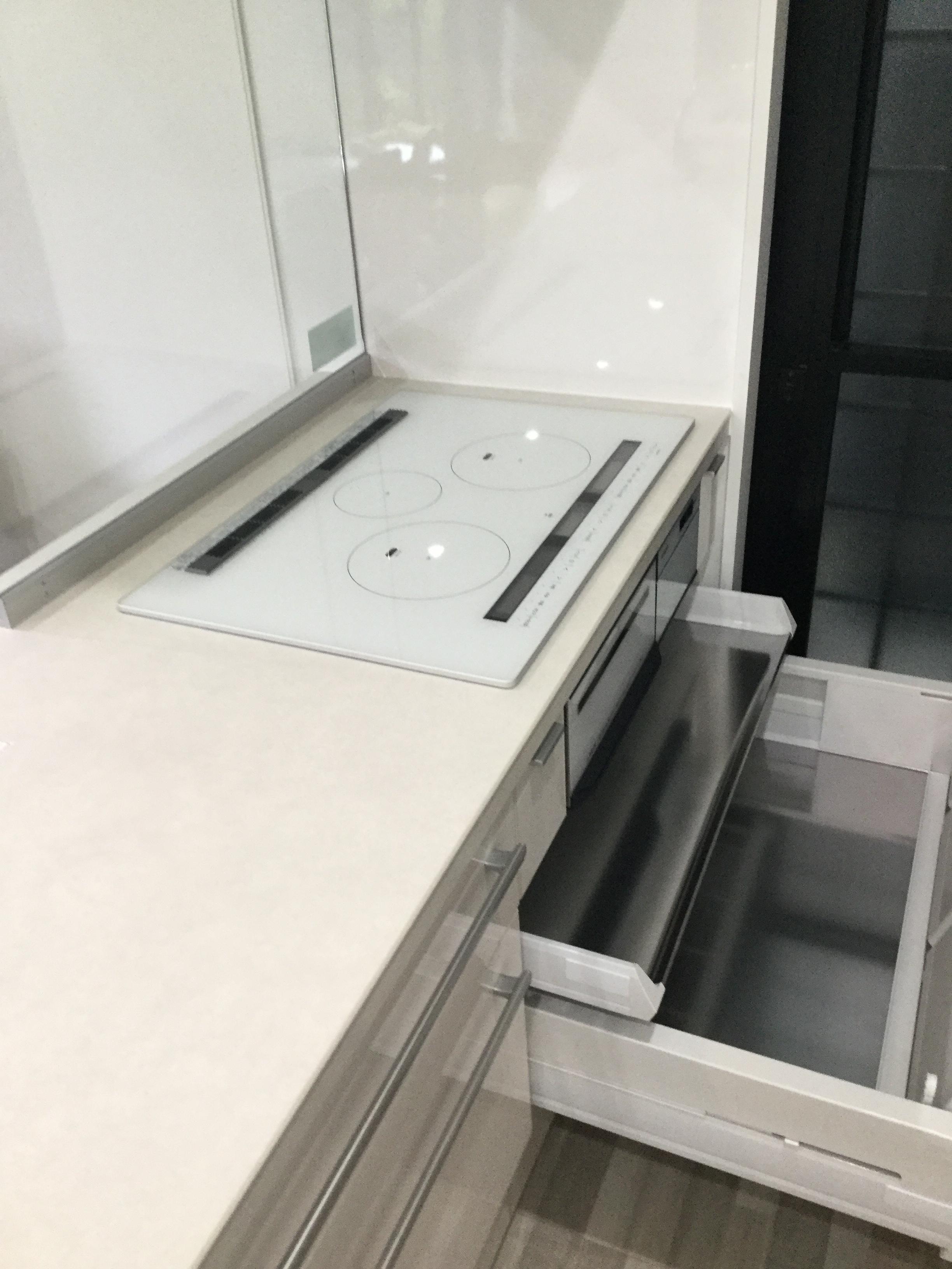 キッチンの水栓周りの水漏れが発生し、今回ご依頼いただきました。 また既設のキッチンは、食器乾燥機がなかったため取り入れたいとのことでした。 キッチンの商品名は【リシェルSI】ペニンシュラ型です。 キッチン背面収納も設置し、収納抜群になりました。