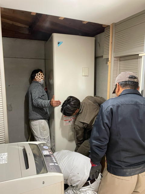 男性4人がかりで運搬、設置をしていただきました。 丁寧且つ迅速な対応で、工事は1日で完了いたしました。