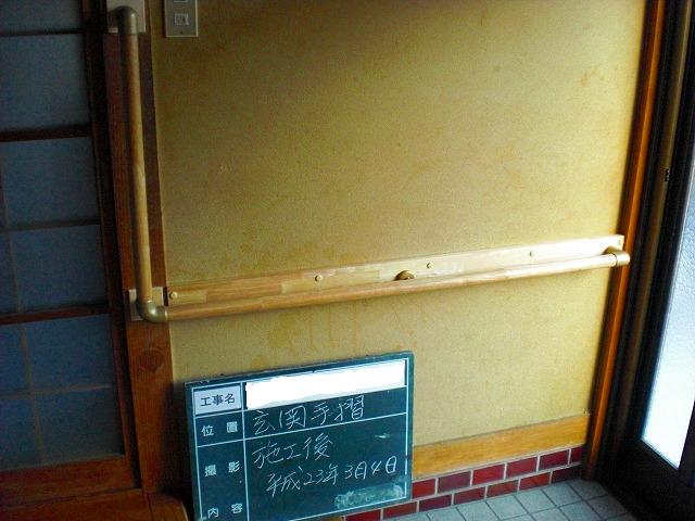 おじいさん、おばあさんのために(^^)くつを脱いだり履いたり、段差を昇ったり降りたり、玄関は大変!!式台も手すりもなく、昇り降りが大変でした。玄関に手すりと式台を付けて、スムーズに出入りできるようにしました