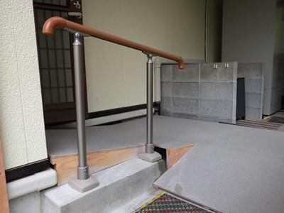 おばあちゃんがラクに出入りできるように勝手口にスロープと手摺りを取り付けました。