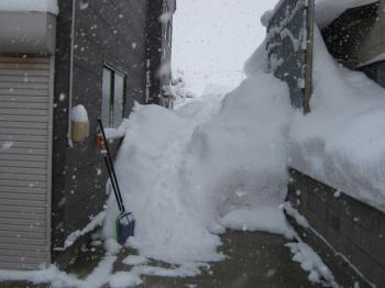 長く降り続いた雪により、屋根に積もってしまった雪をおろし、裏庭へ除雪しました。