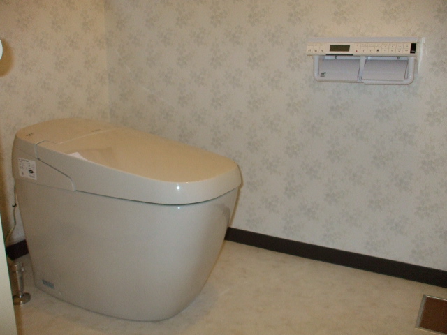 100年トイレでお手入れ簡単、除菌もしてくれるのでとても快適です。トイレの取り替えに合わせて内装もご提案いたしました。