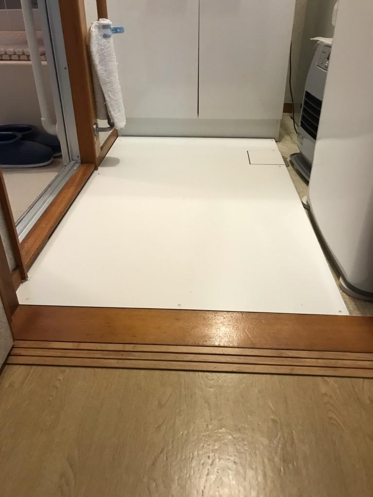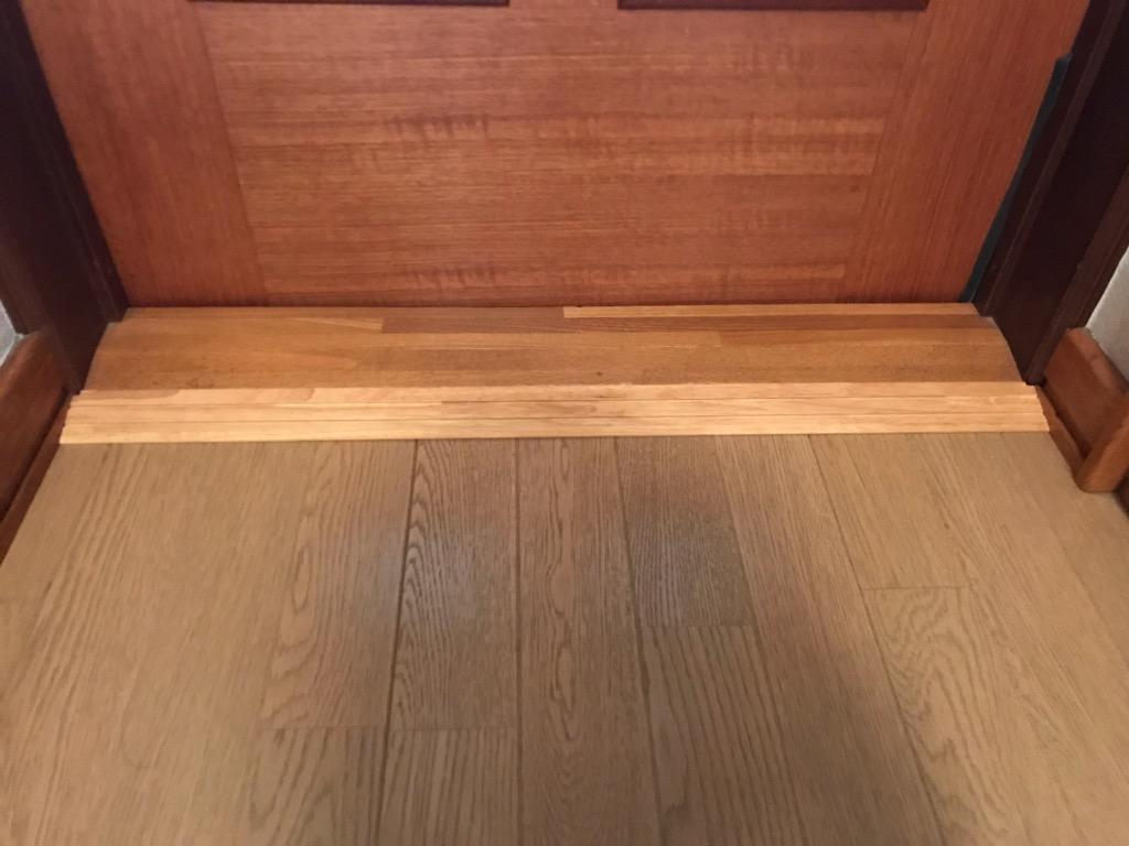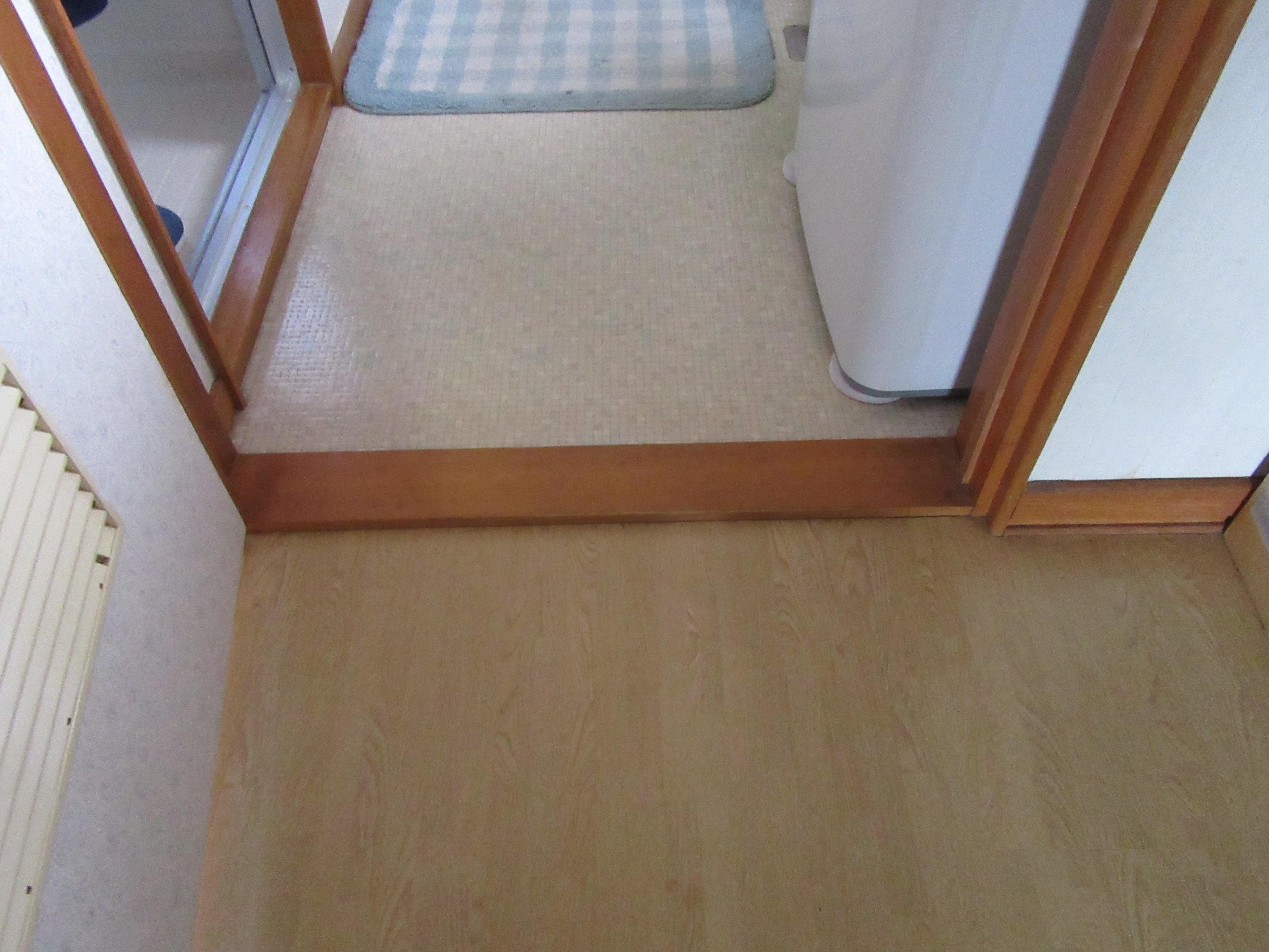 今回介護保険を使いリフォームを行いました。 少しの段差も不自由に感じると思います。介護の経験もあるので、少しでも力になれればと考えました。ドアのところには小さいスロープを付け、洗面所は撥水の板を上張り、浴室内は木のすのこでは腐ってしまうので、お手入れしやすいもので、段差解消を行いました。 介護保険の工事、小さい工事もお任せください。