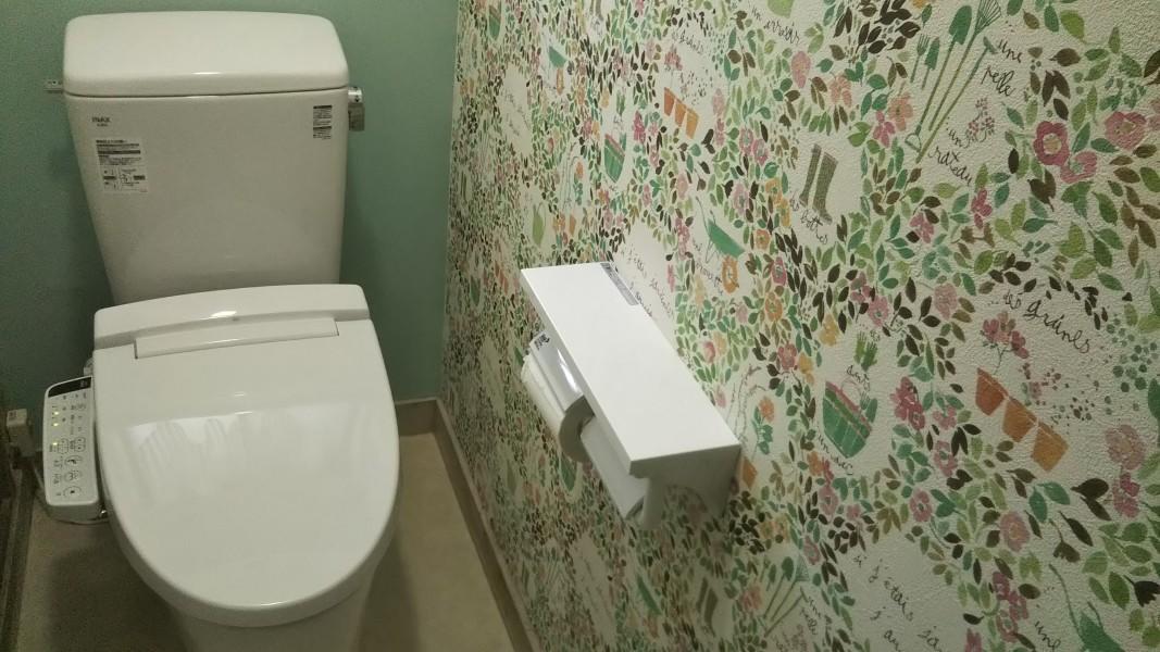 この度はご用命いただきありがとうございました。 お掃除が大変だとお伺いしたので、極力お掃除手間のかからないトイレを付けました。 壁紙で華やかさを出して、居心地のいいトイレに仕上げました!