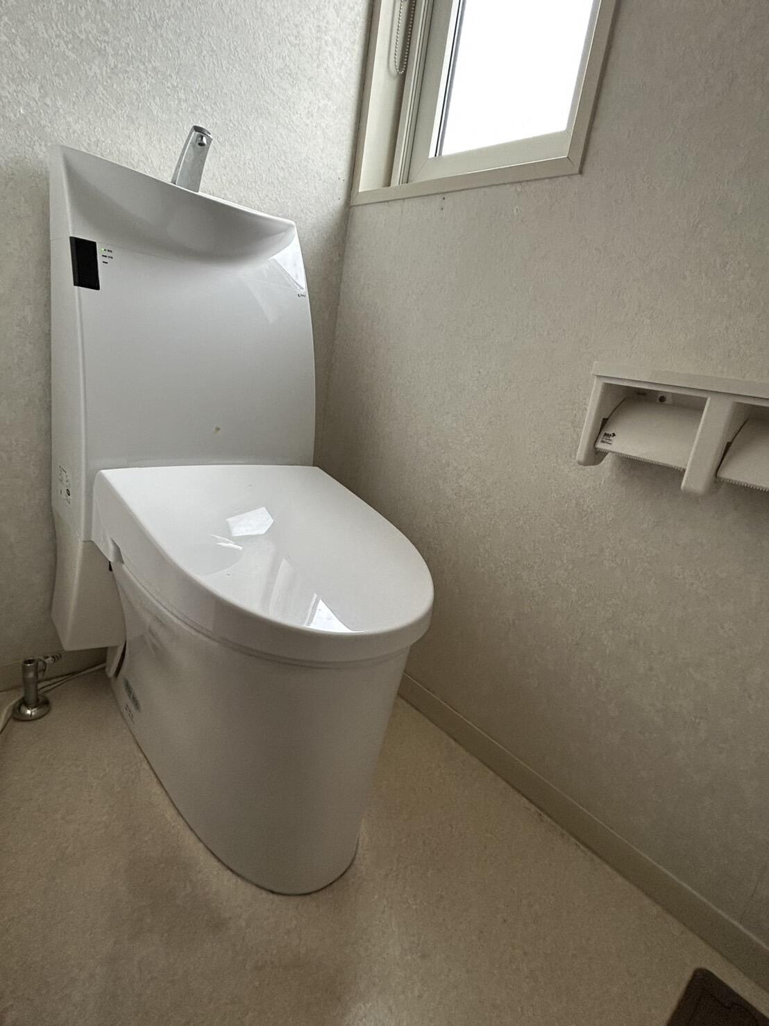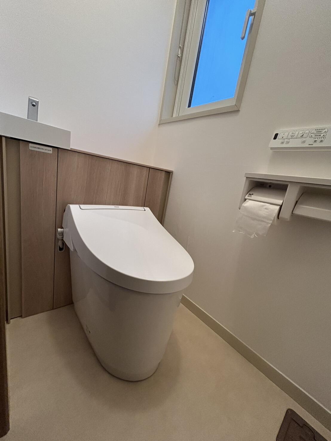 見た目すっきり、でも収納力はしっかり欲しいというご希望にぴったりだったのが、LIXILのキャビネット付きトイレ「Jフィット」。 限られた空間でも圧迫感なく、掃除道具やストック品もすっきり収まります。 見た目と機能性を両立したトイレ空間になりました。