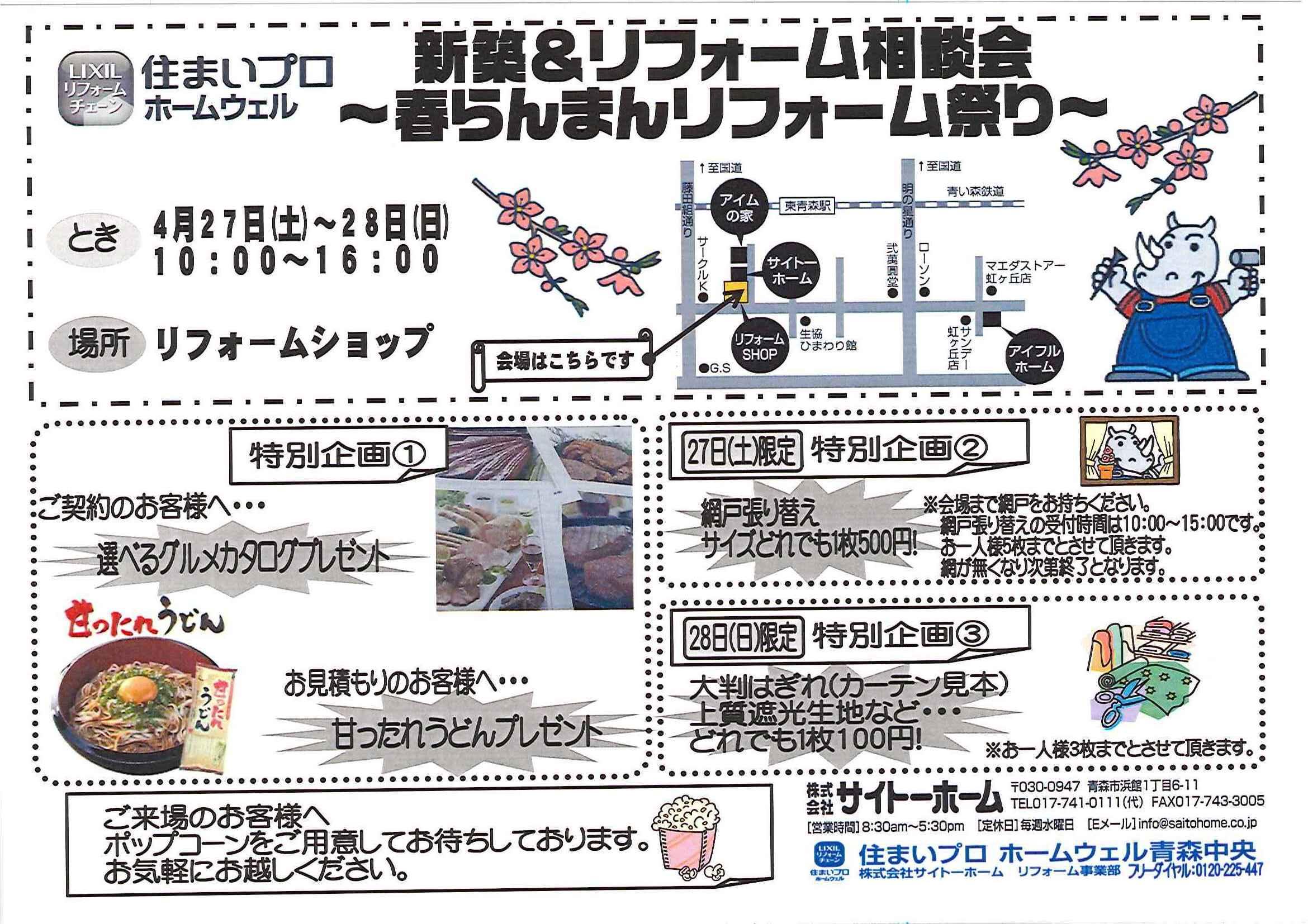 新築&リフォーム相談会~春らんまんリフォーム祭り~ を行います。