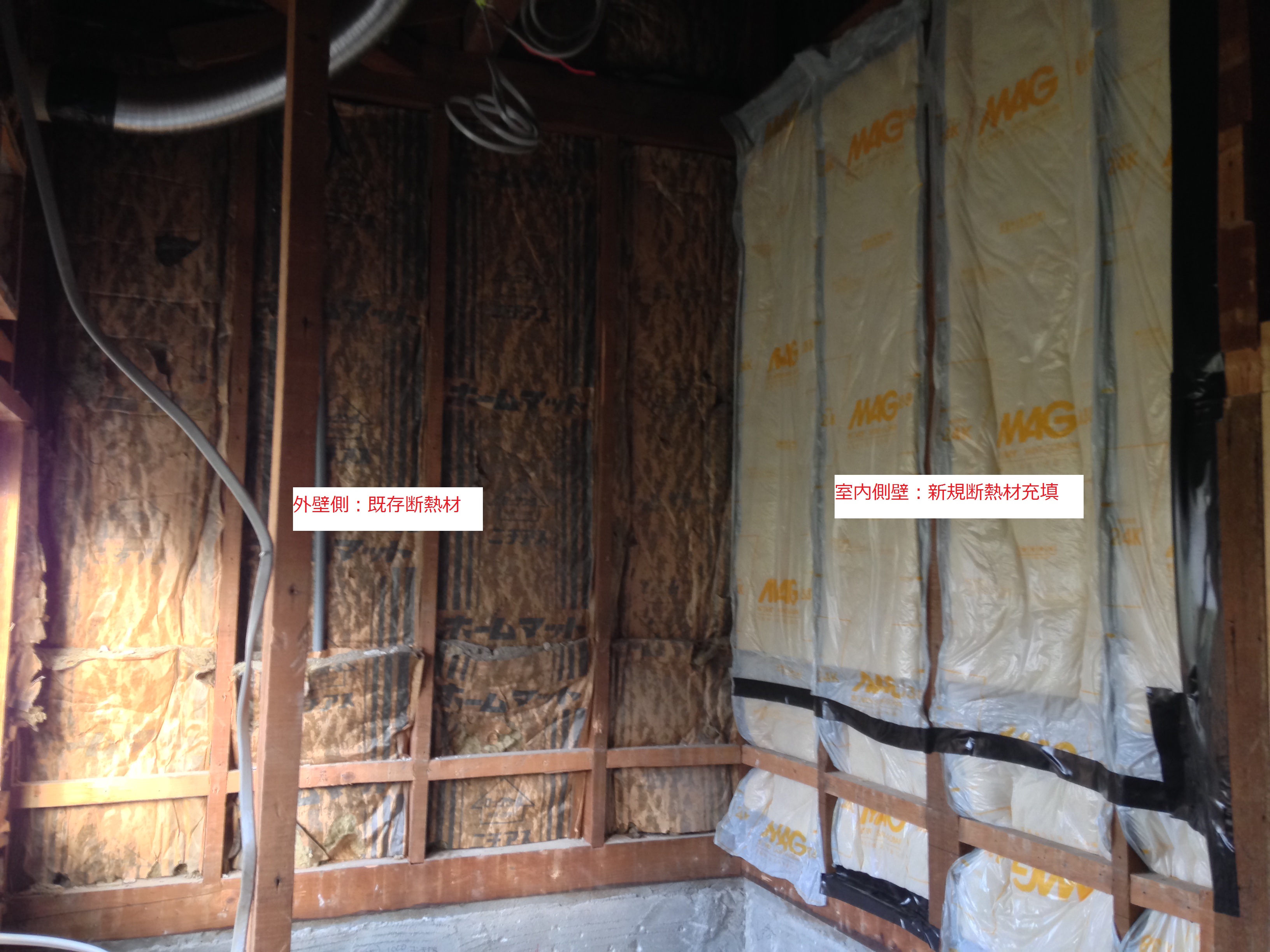 外壁周りの壁には断熱材がしっかり入っていますが、
