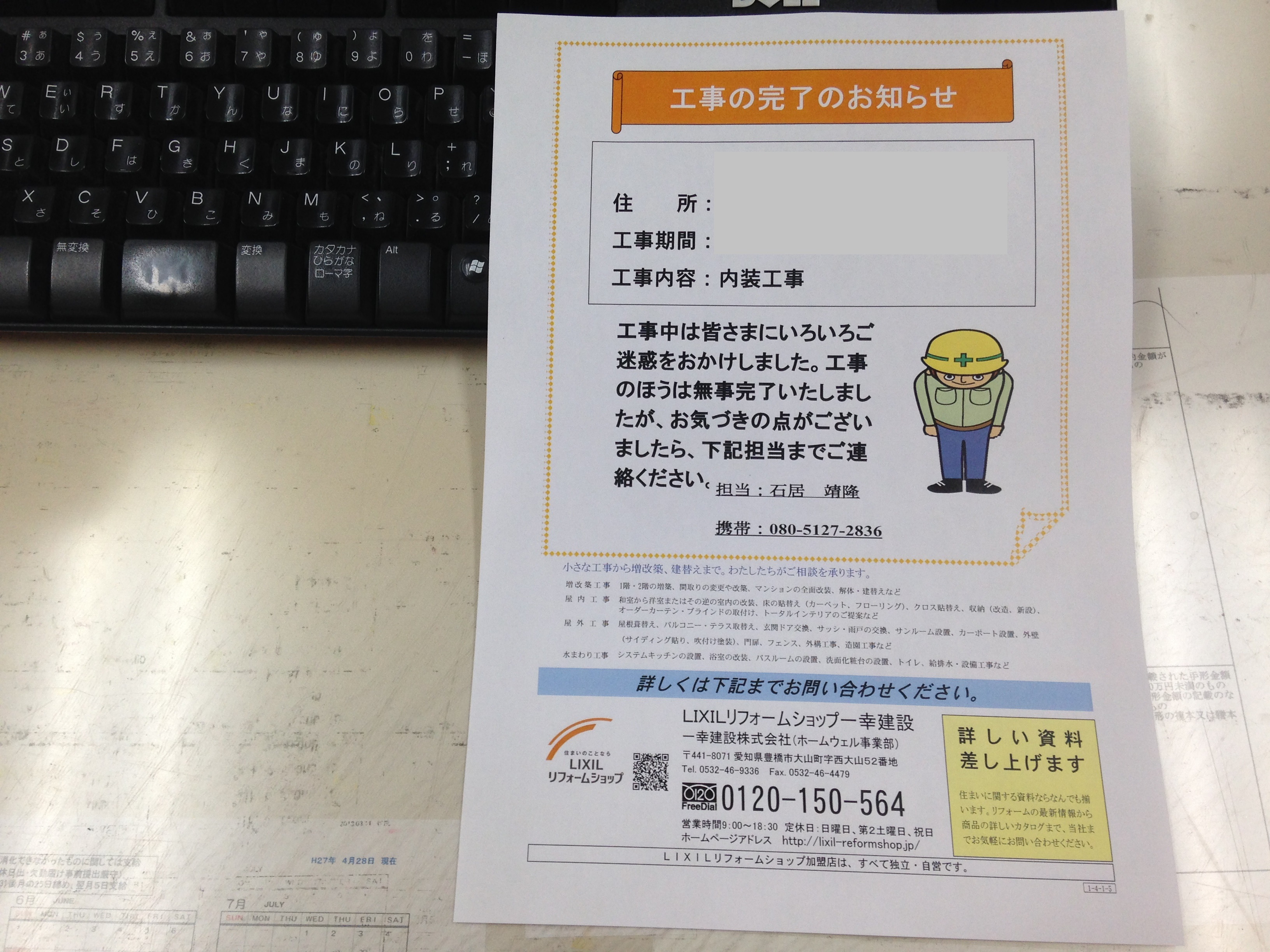 施工前・施工後、近隣の皆様にご挨拶をさせていただいております。
