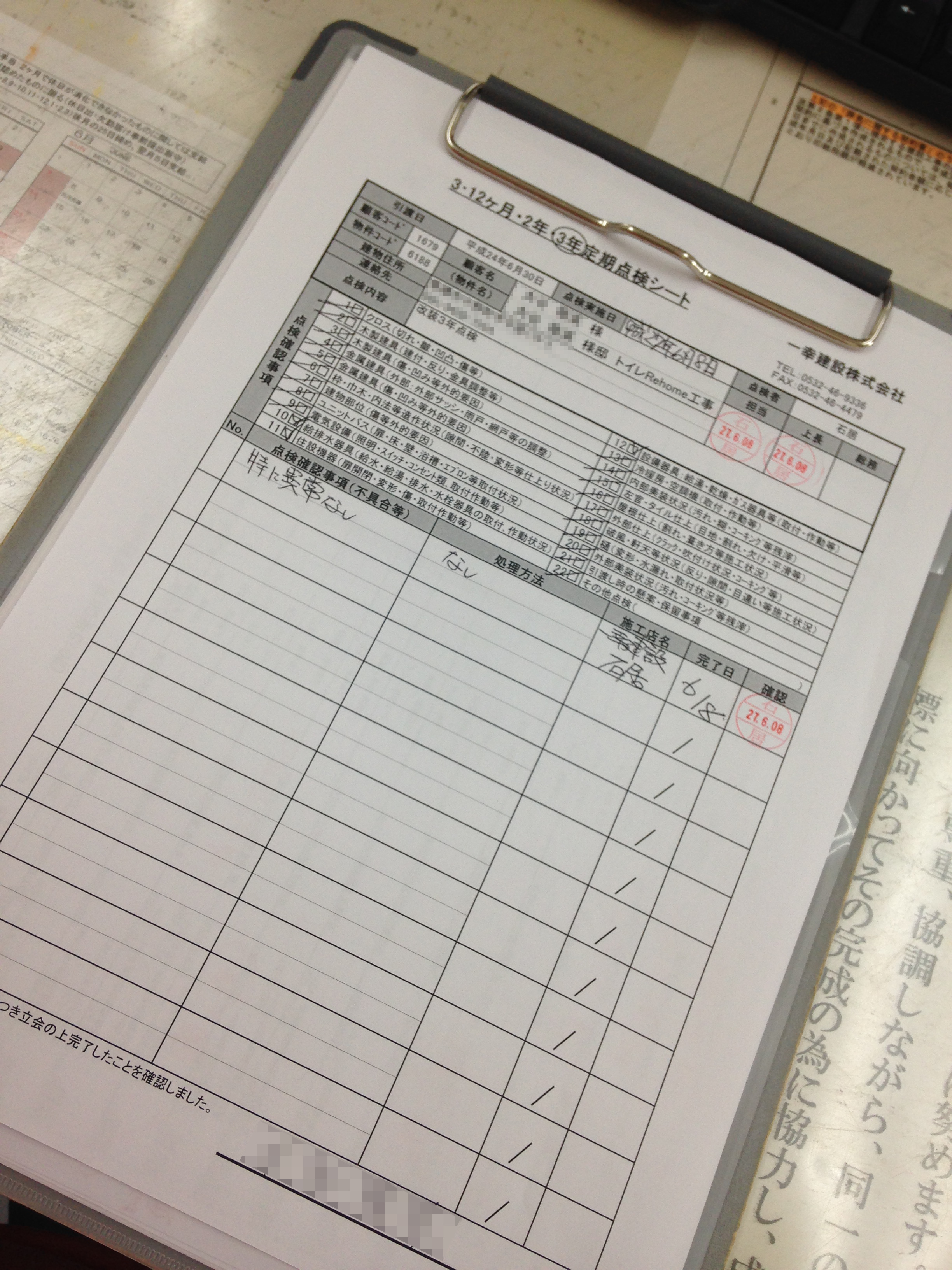 リフォームをしていただいたお客様に 定期点検 を実施させていただいております。