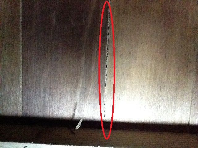 築30年以上なので複合フロアー(ベニヤで張り合わせた床材)の経年劣化で