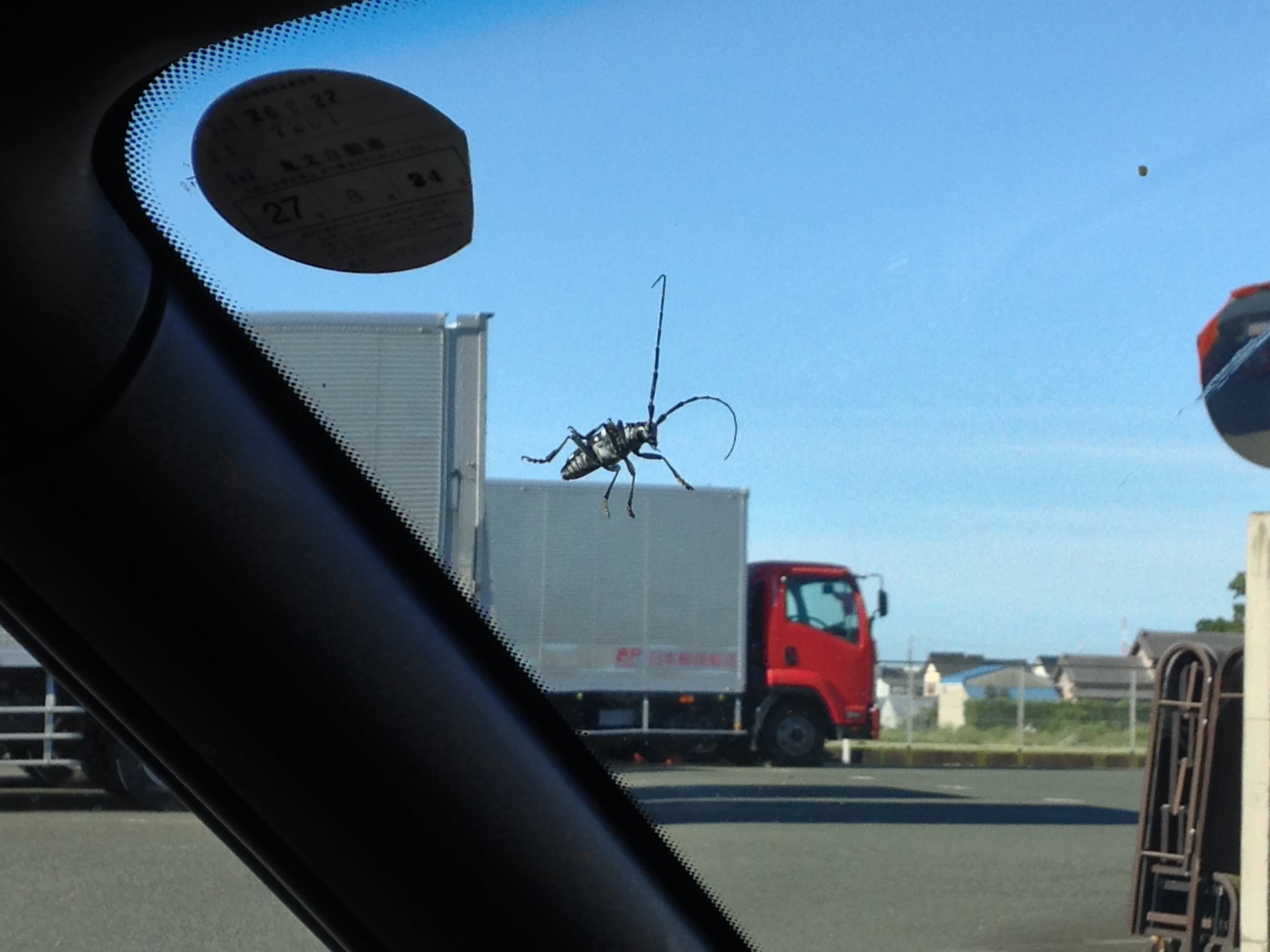 画像は車にくっついてきた 「ゴマダラカミキリ」です。