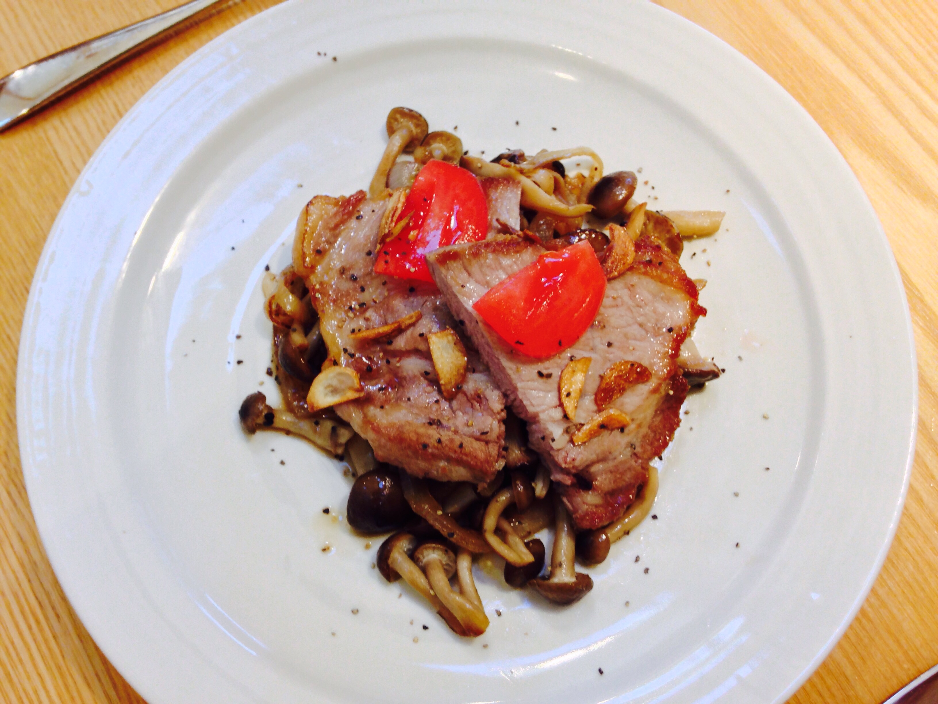 今日の夕飯は 豚肩ロースソテー でした。
