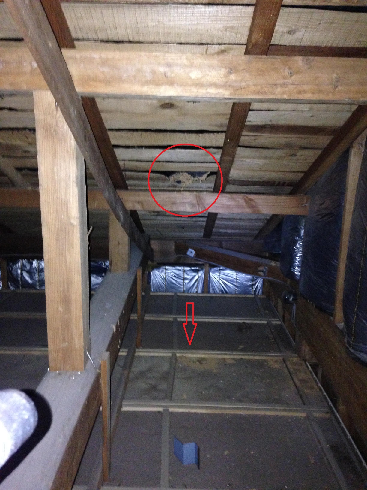 野地板の上に敷いてあるフェルトに穴が開いていて