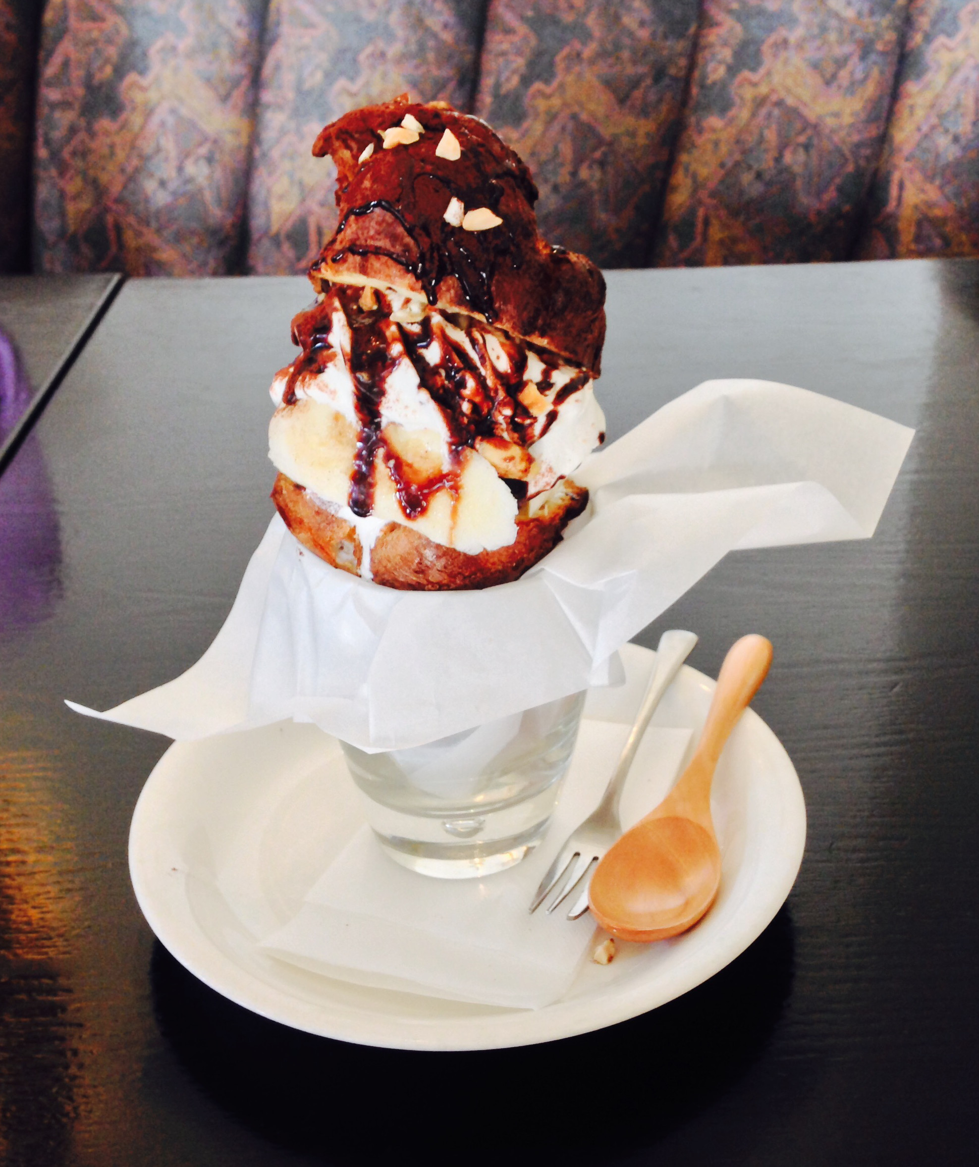 カリカリの生地に溢れんばかりのアイスと生クリーム&バナナチョコ!