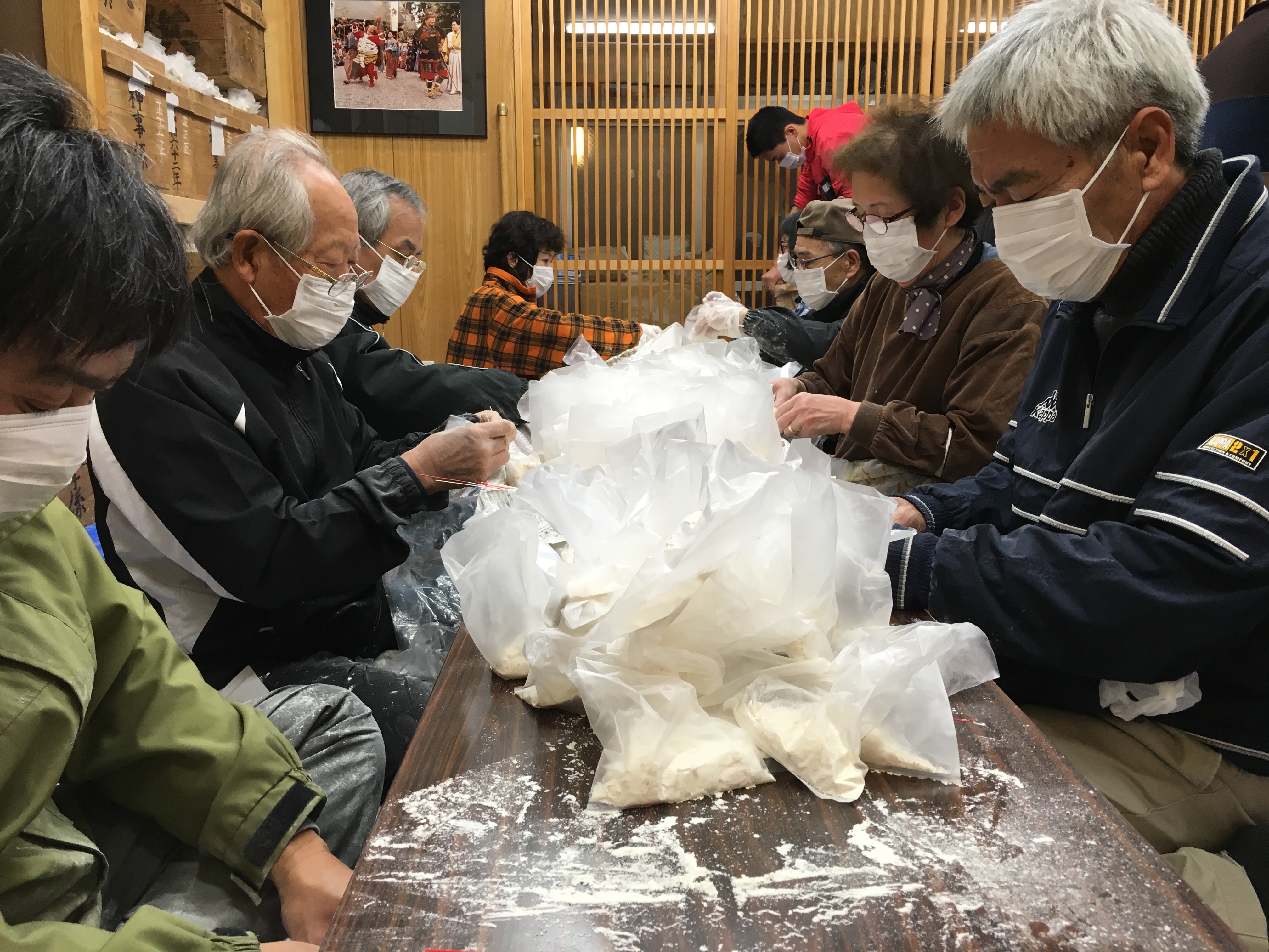 町民総出で「飴詰め」作業が行われます。