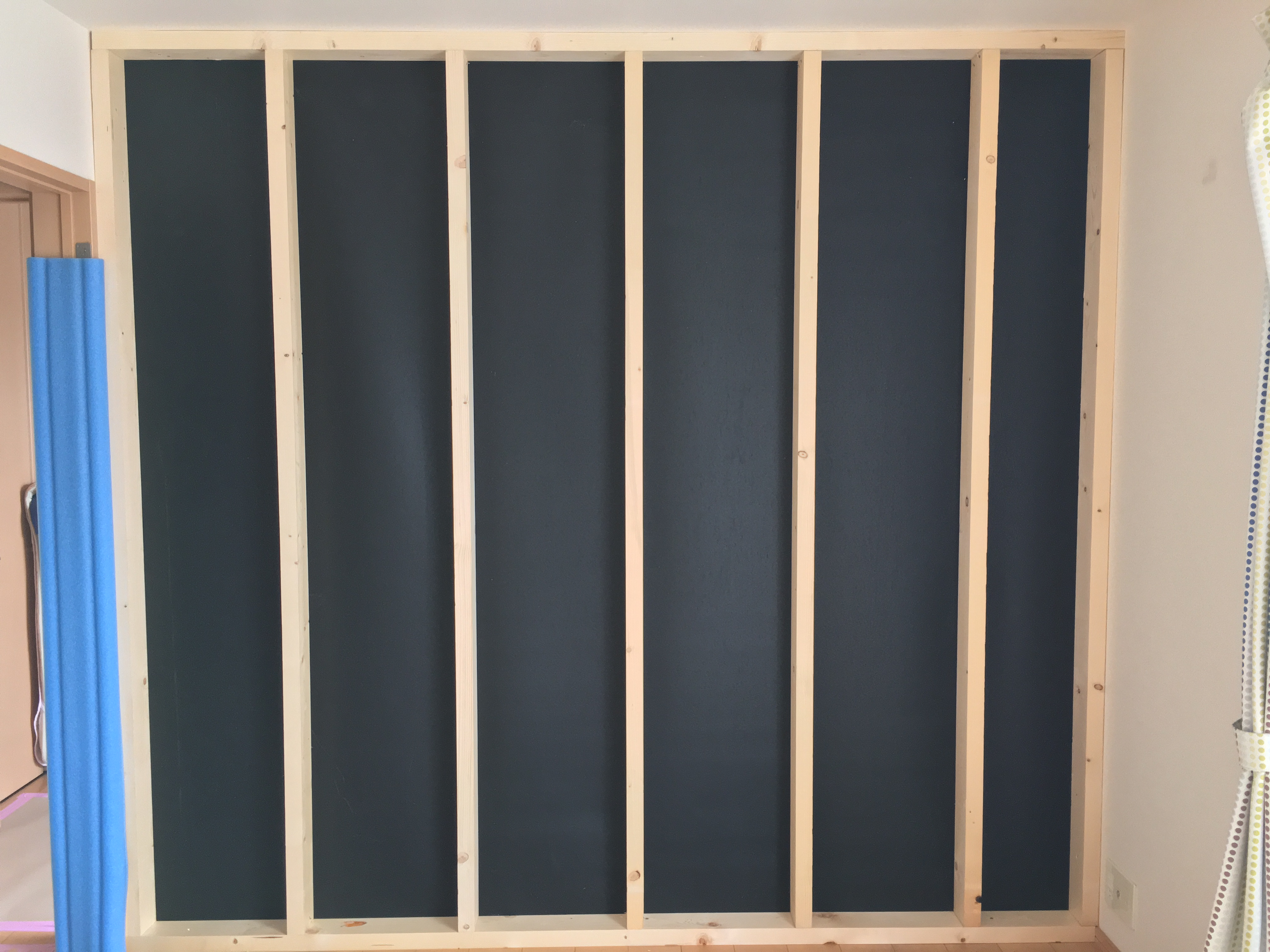 間柱で下地壁を作った後に遮音シートを張って
