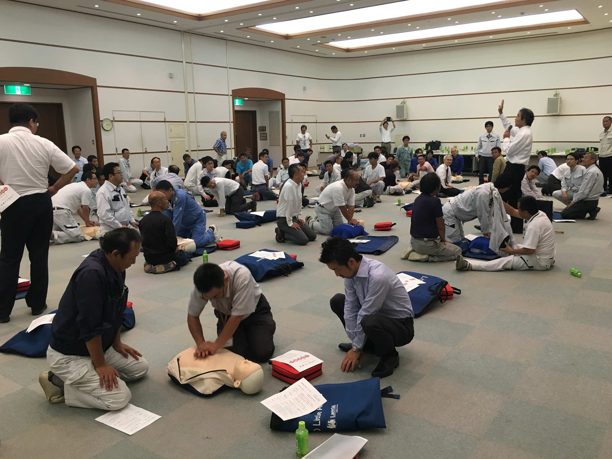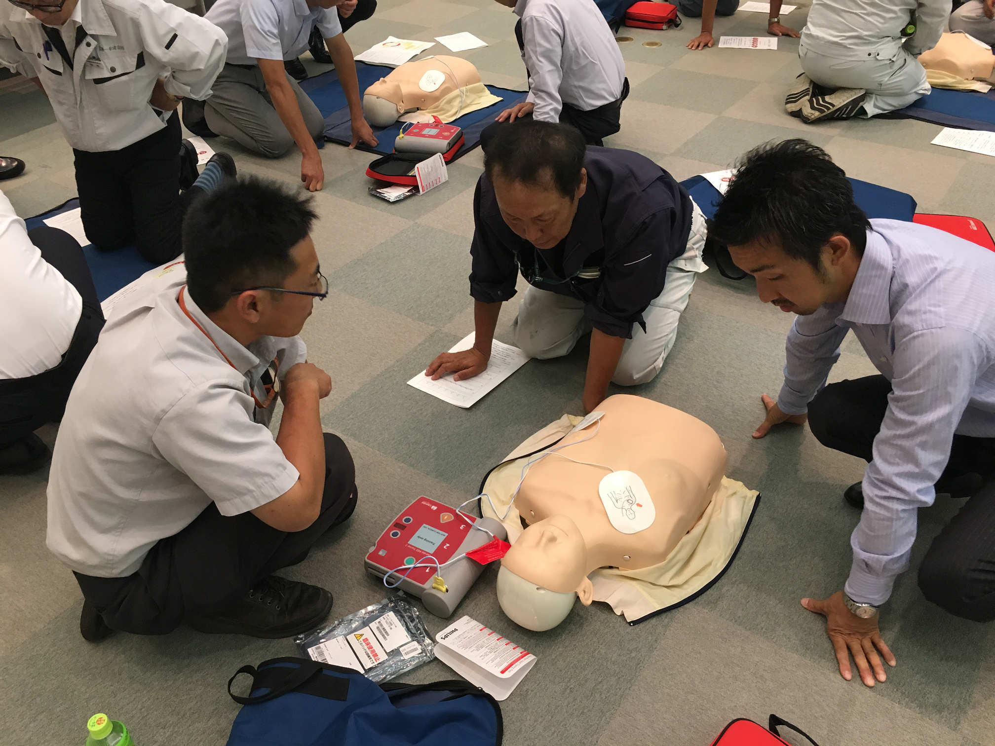 では実際心臓マッサージ、AEDの使用を教えていただきました。