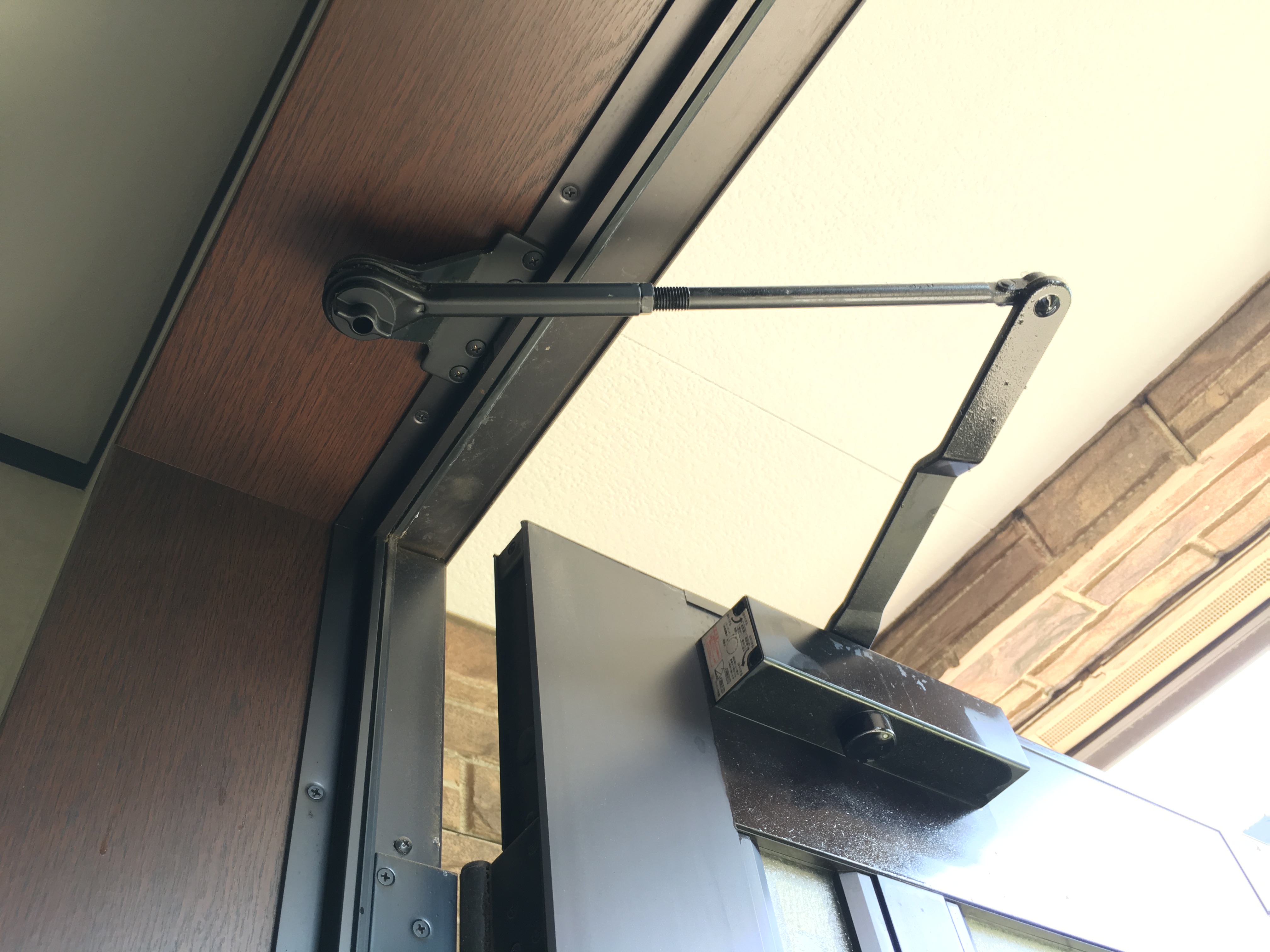 これは玄関ドアに付いている ドアチェック(箱とアームのようなもの)