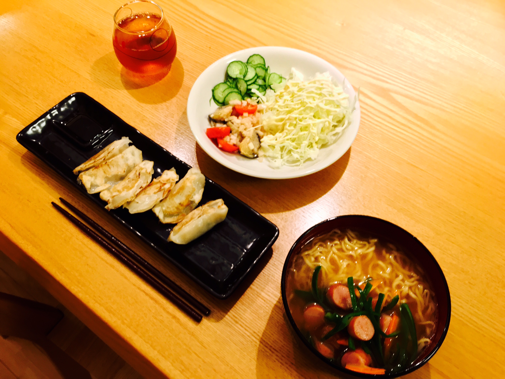 昨日は餃子、ラーメン、夏野菜サラダでした~