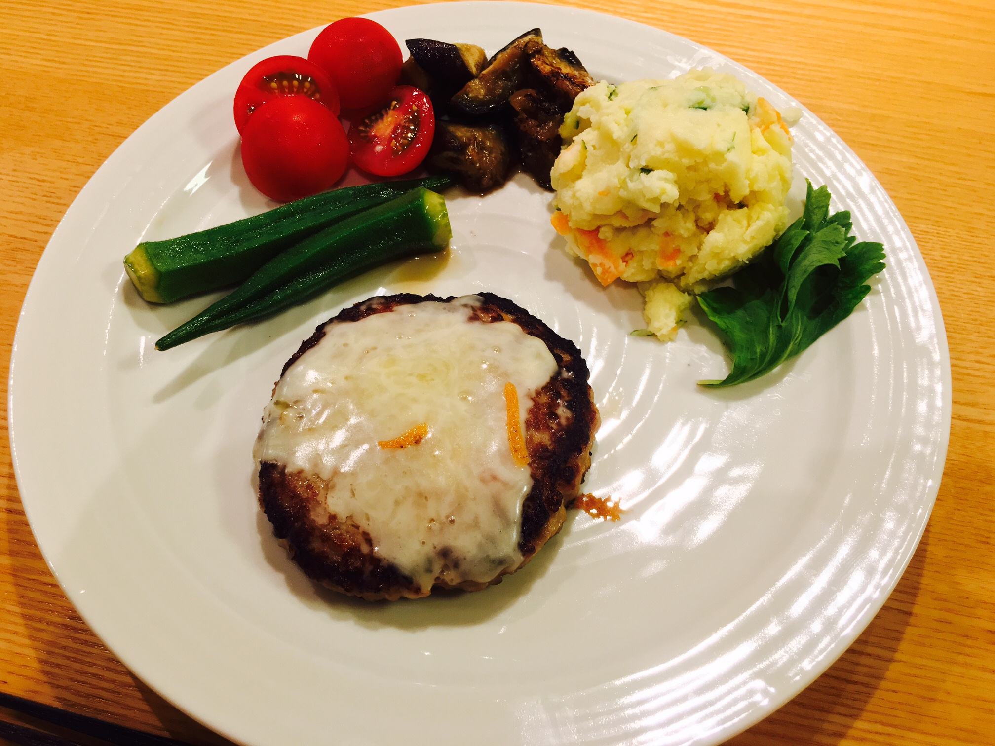 先週の土曜日は手作りチーズハンバーグ(焦げ)でした~