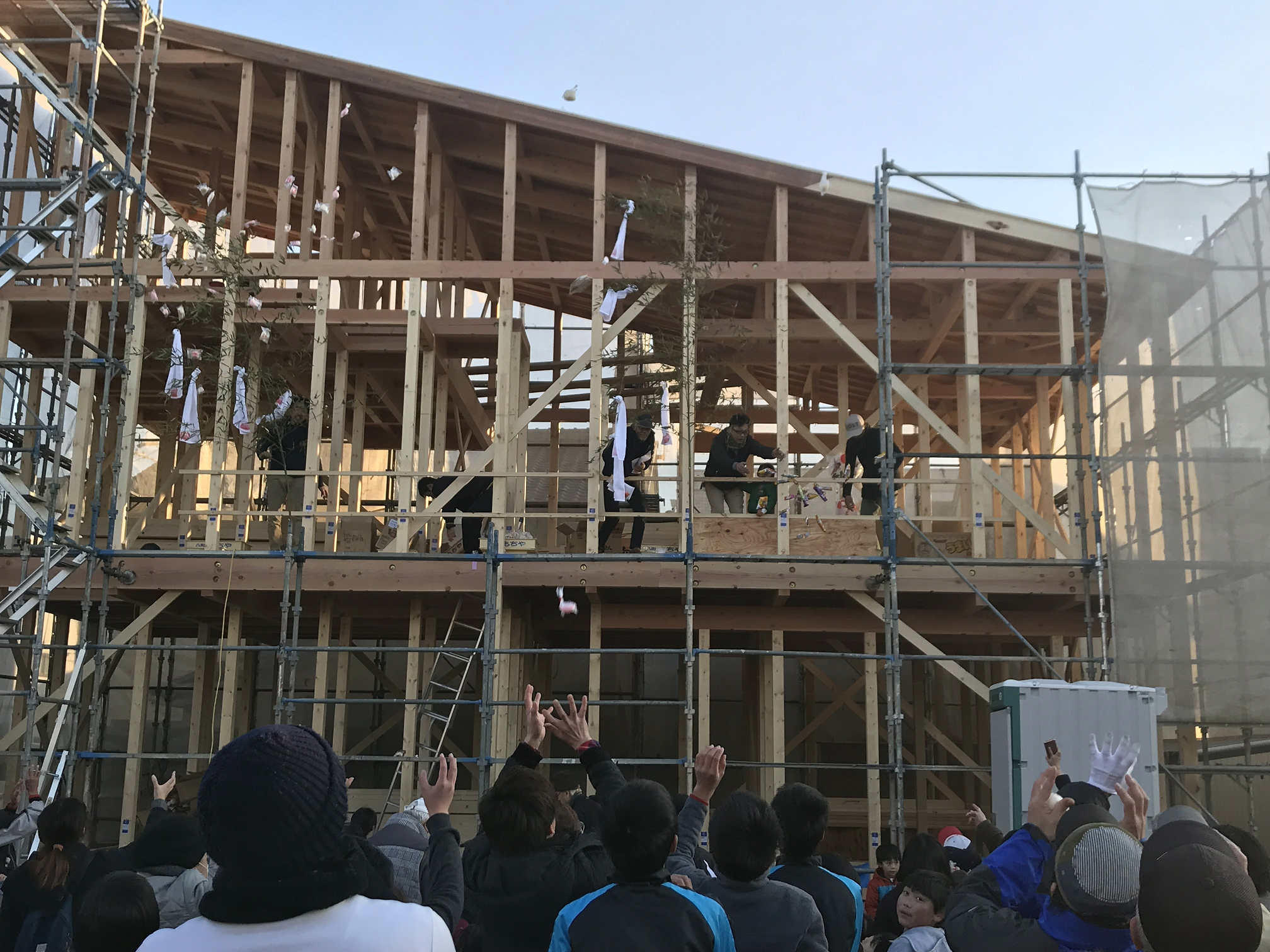 新築建築中の町内の先輩宅にて上棟、