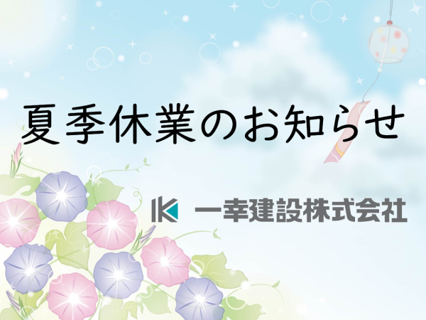 さて、一幸建設株式会社は誠に勝手ながら下記の期間は夏季休業とさせていただきます。