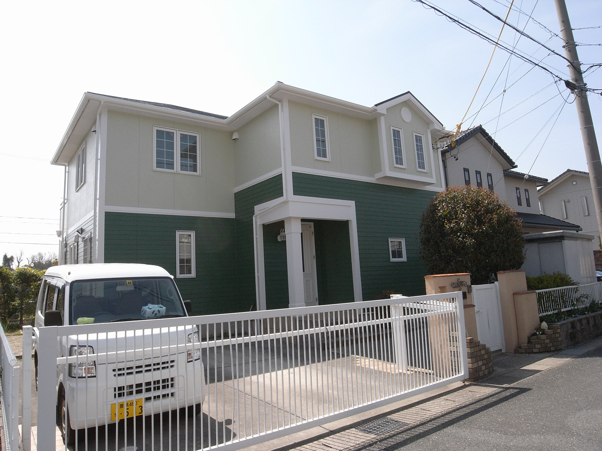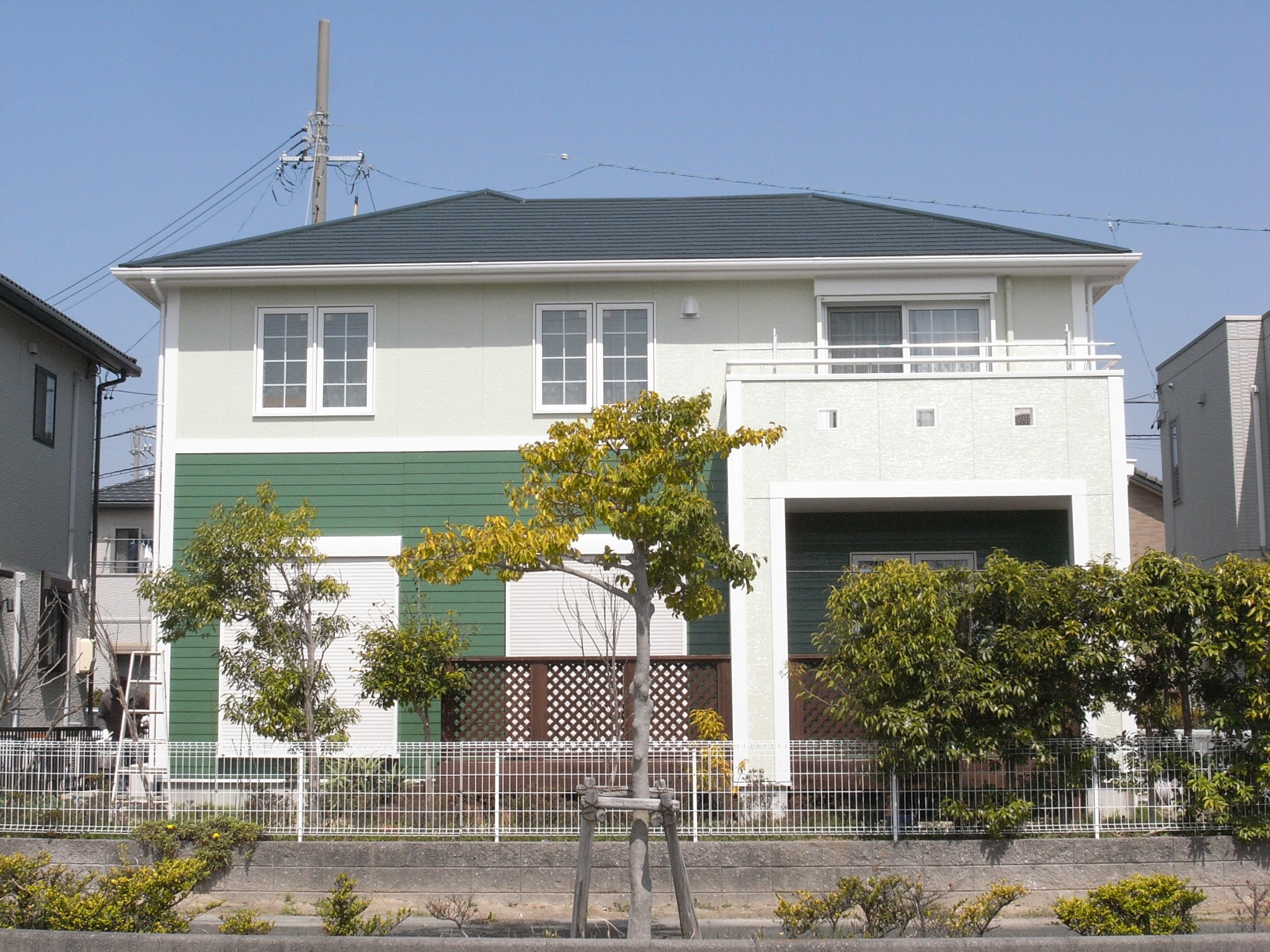 色を選ぶのに悩みましたが、思った通りの明るいグリーンでよかったです。 10年後の塗り替えはブルー基調の色に挑戦したい!との事でした。