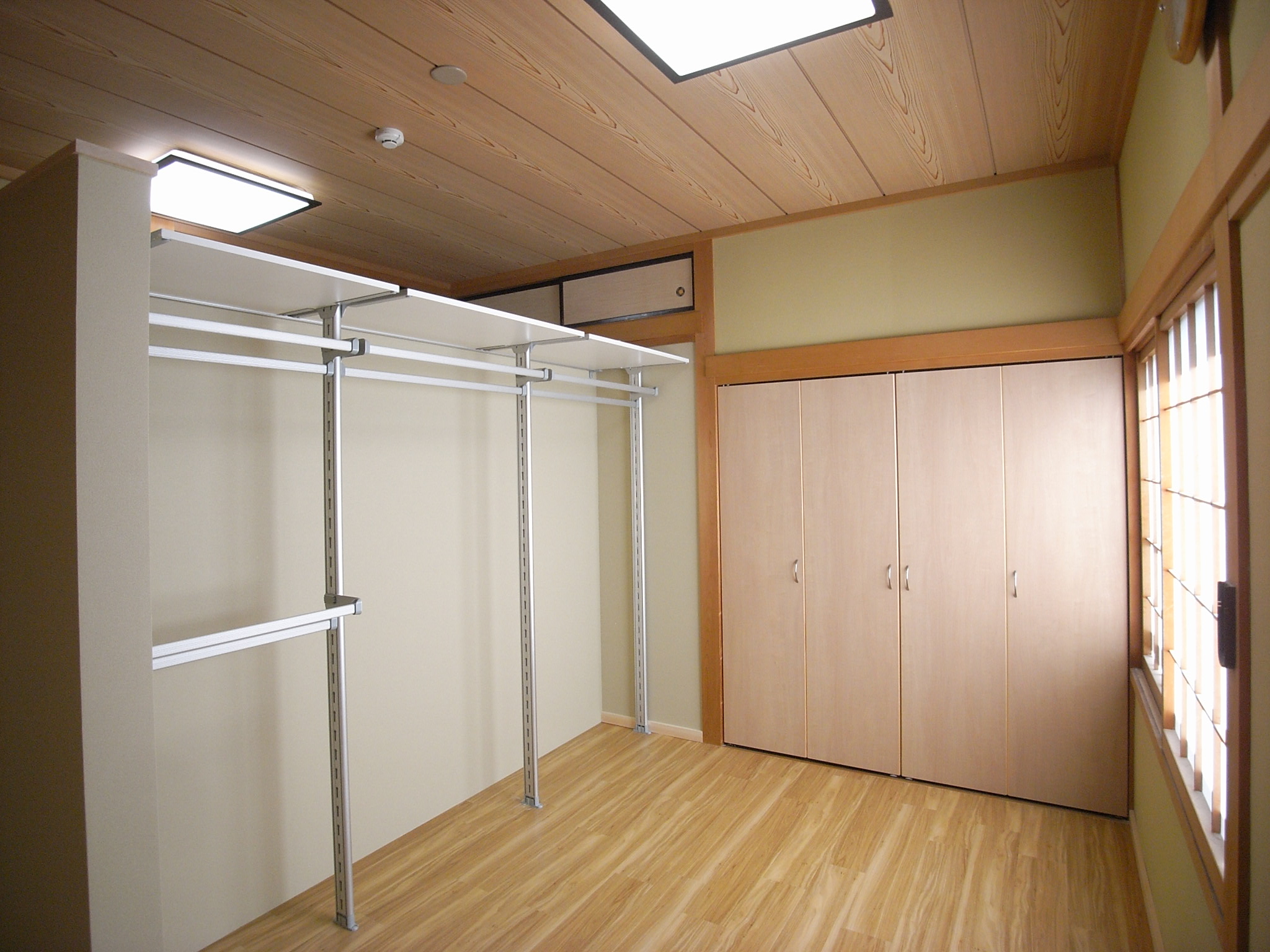 洋服収納の為に使用していない和室をW.I.C(ウォーク・イン・クローゼット)に改修。広すぎる玄関ホールの縮小・洋室拡張と共にリフォームしました。今回はその和室W.I.Cリフォーム部分のご紹介です。