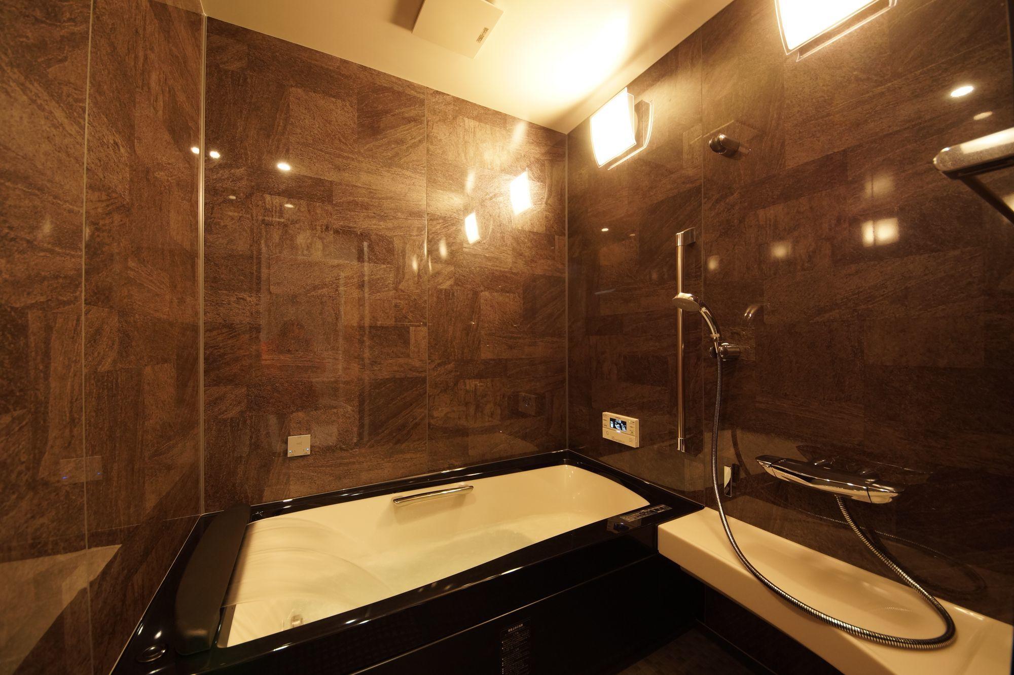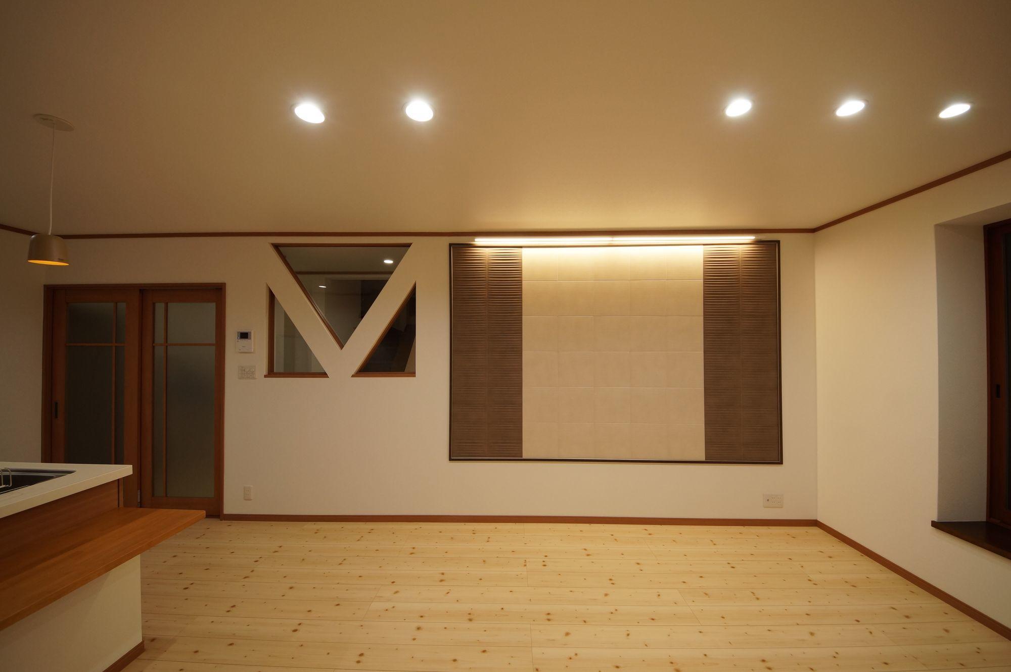 壁面の「エコカラット」は壁材のアクセントと言うだけでなく、調湿・消臭効果もあります。凹凸のあるタイルのような形状なので部屋を少し暗くして間接照明を当てると、陰影が印象的に浮かび上がってきます。