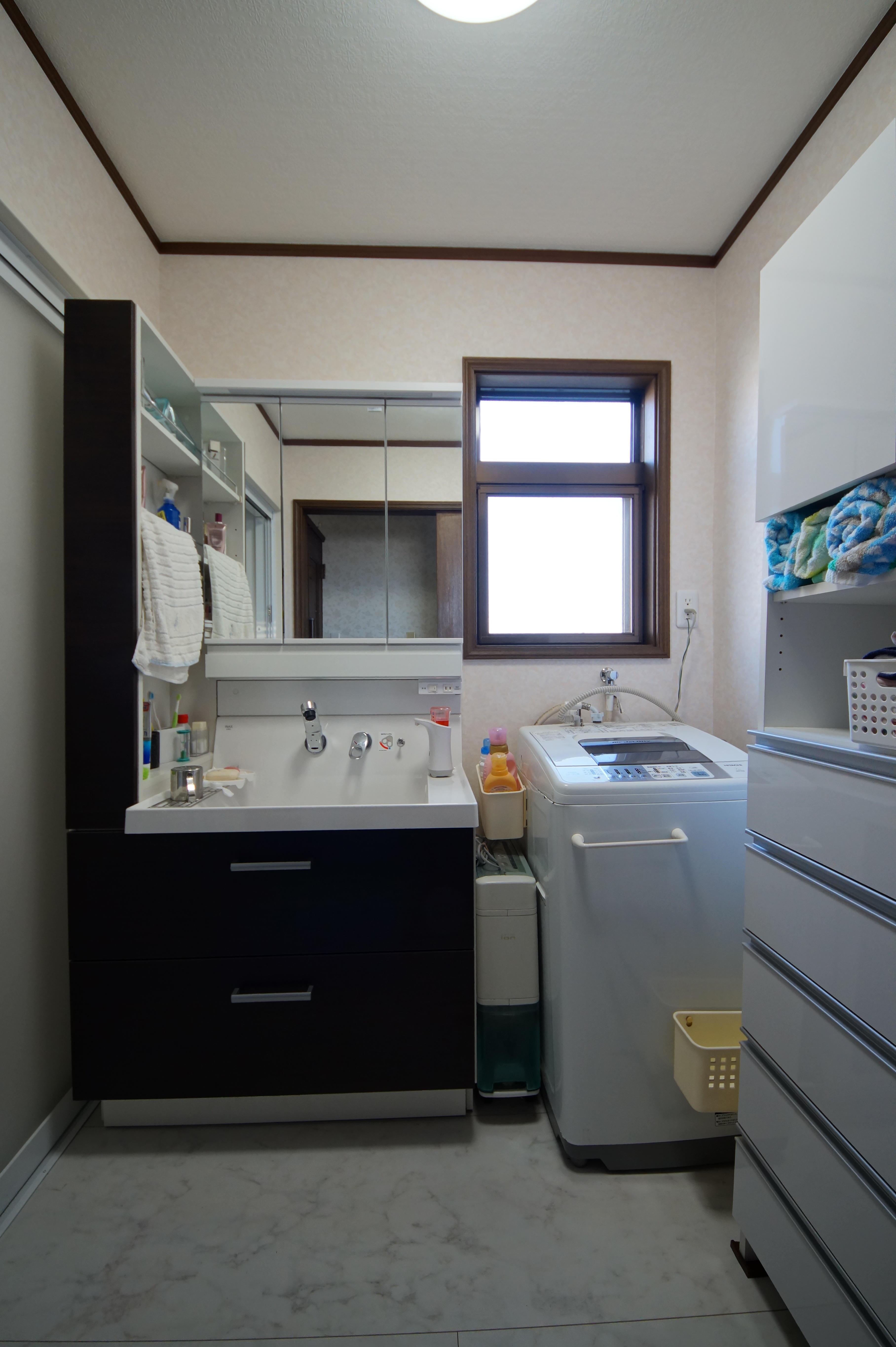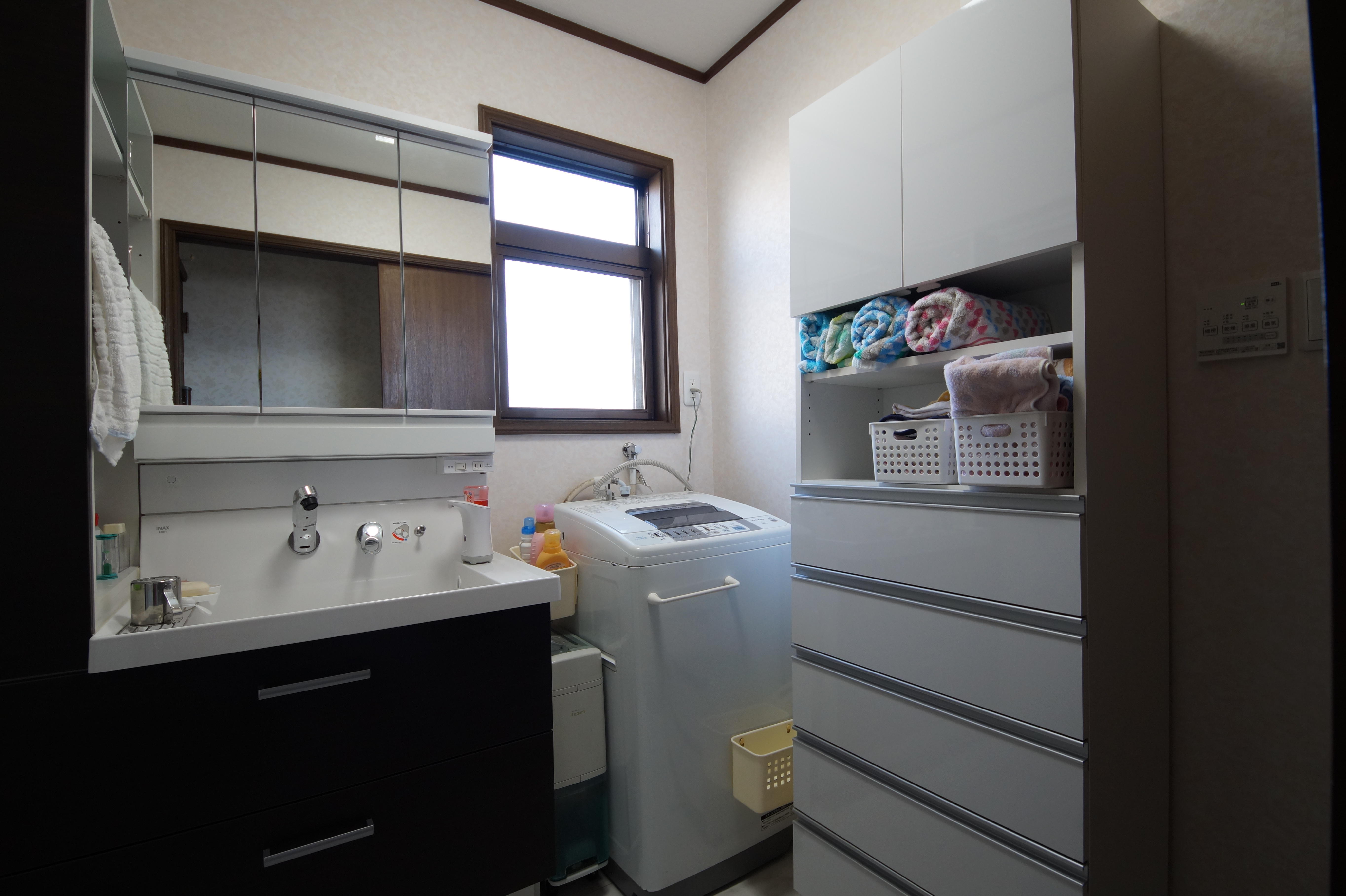 折角リフォームするなら、快適な生活がしたい!という想いからトイレ・洗面化粧室は収納力をUPして、お手入れやお掃除が簡単にできるようにご提案しました。バスルームは日々の疲れを解消し心までも癒す空間にと、アクアフィール付きシステムユニットバスを選ばれました。