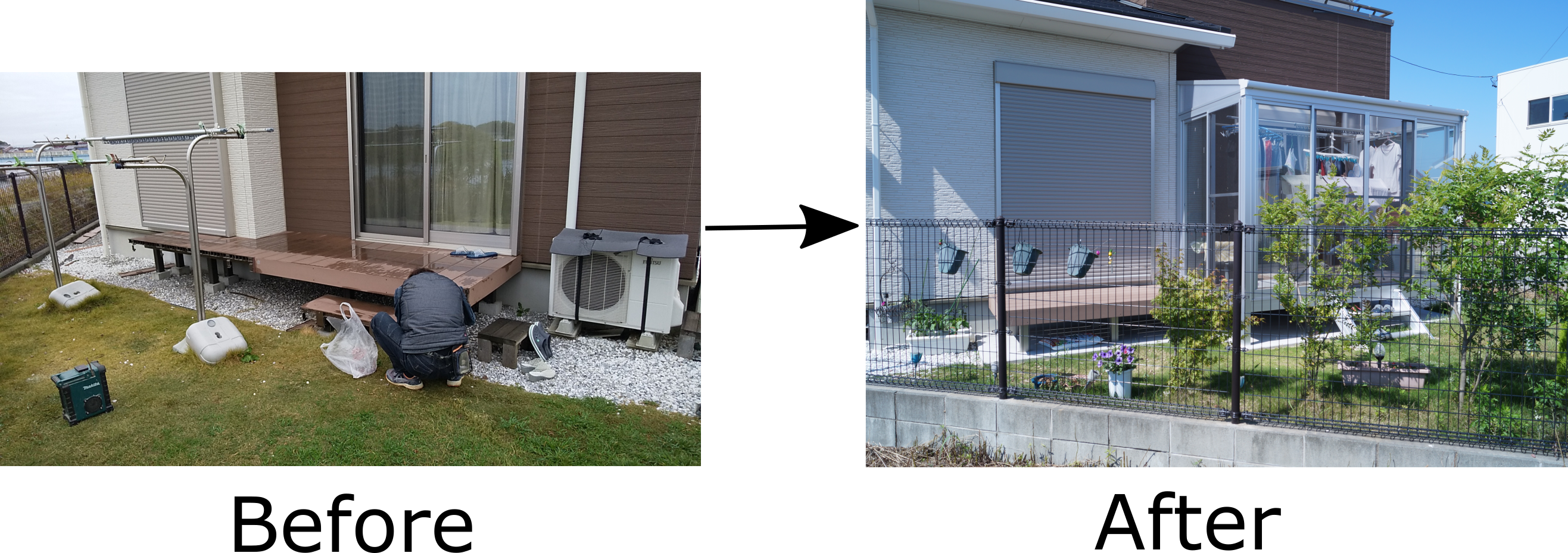 風当たりの強い川沿いにお住いのH様。 洗濯物が飛んでしまいお困りでした。 毎月お届けしているDMをご覧になり、弊社にご相談いただきました。