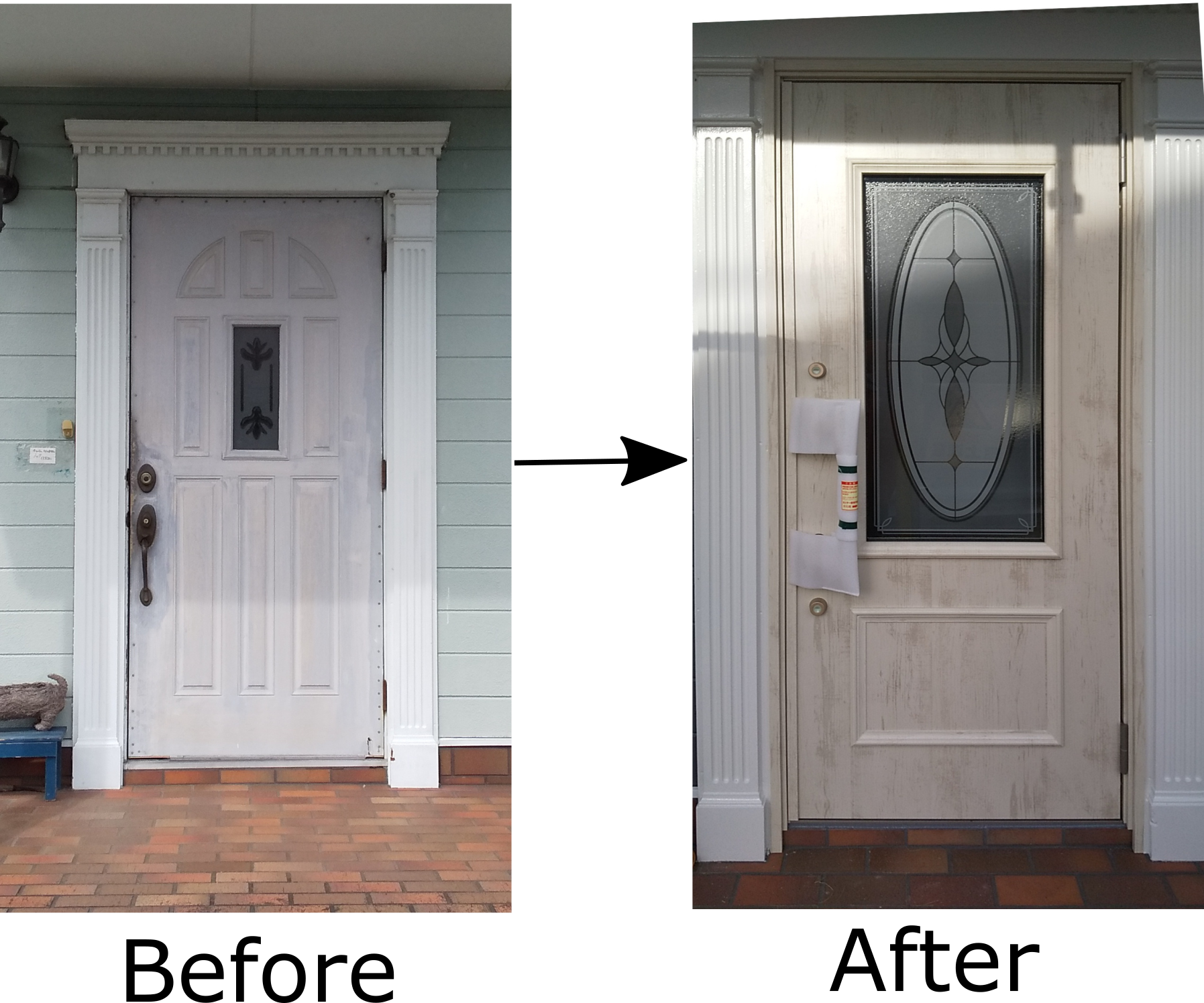 新築以来、外装工事は手を付けたことがなかったそうで、外壁のメンテナンスだけでなく、玄関ドアやサッシの劣化や破損が見られました。これ以上そのままにしておくと、雨水が壁の中に侵入して取り返しのつかないことになってしまいます。そこで今回は外壁塗装の塗り替えとともに外部建具(玄関ドアや窓など)も一新しました。
