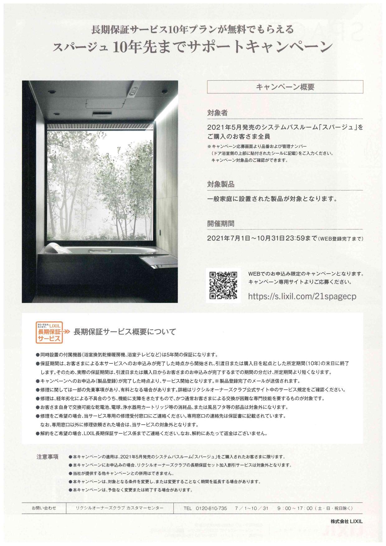 LIXILのスパージュを下記の期間中、ご成約頂いた方全員に