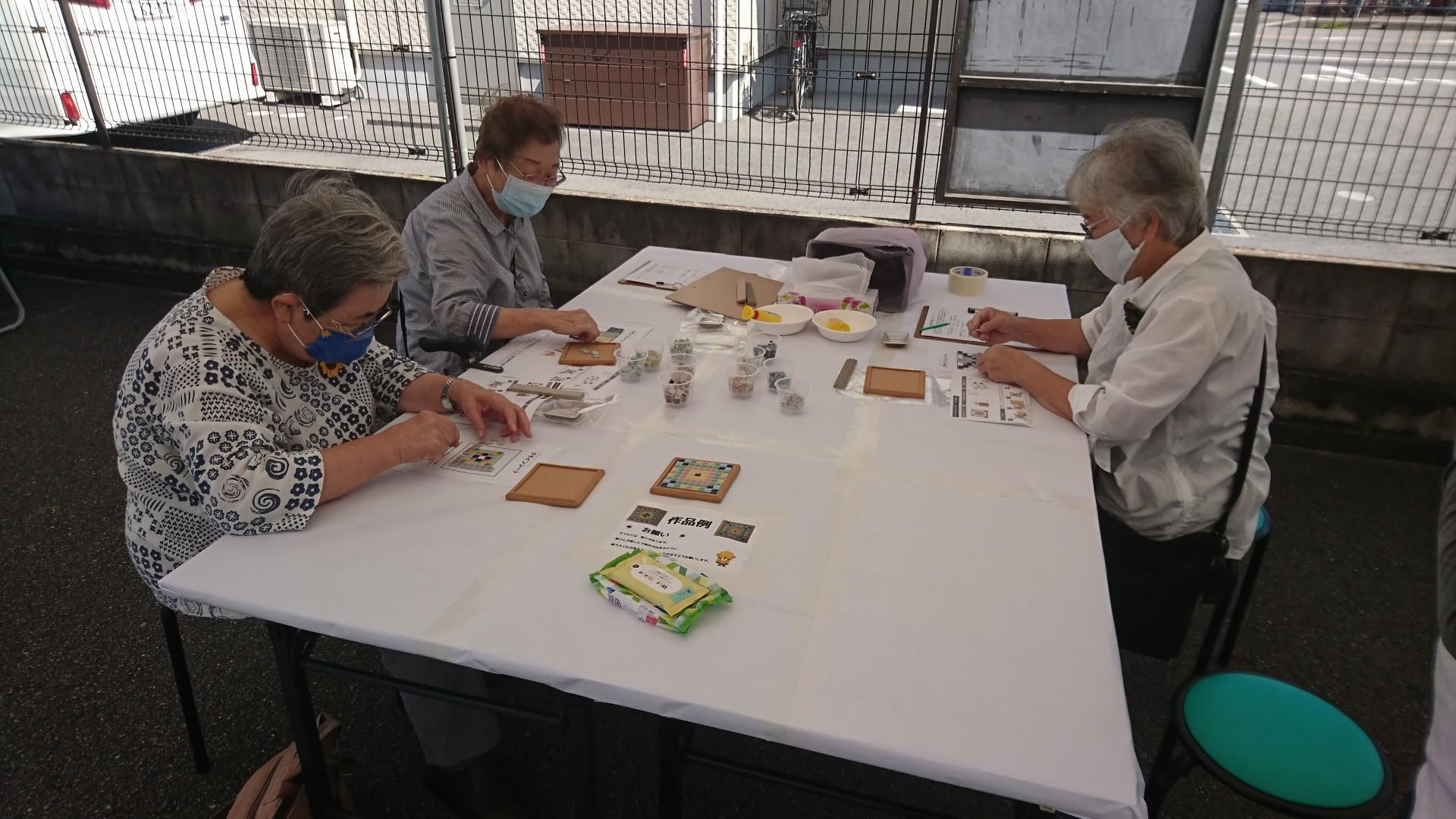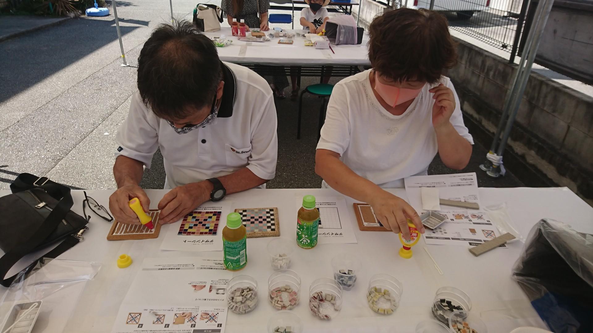 ★ミニ工作では、モザイクタイルコースター作りを体験して頂きました。
