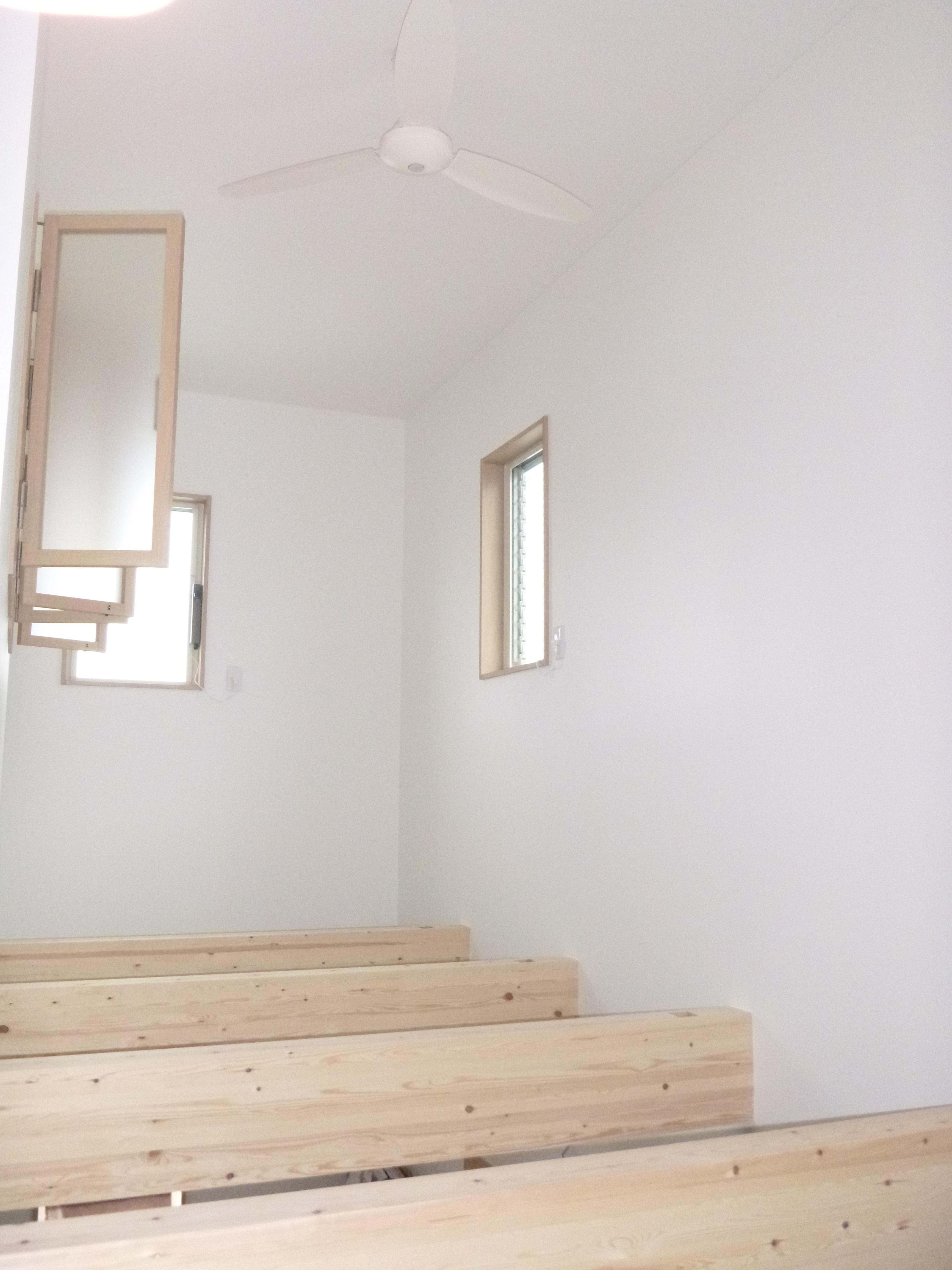 吹き抜けのためエアコンの効きめなどを補うために天井にファン床暖房を設置しました。
