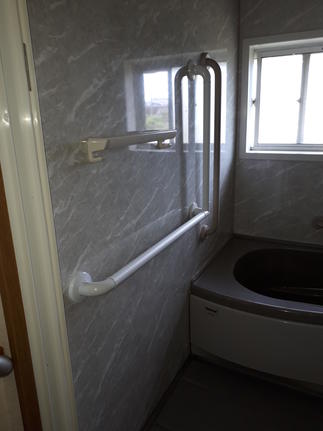 浴室出入口近くの壁にL型手すりを設置することでドアの開閉後の移動と浴槽への出入りが安定して出来るようになりました。その他詳しくは当社HPをご覧下さい。