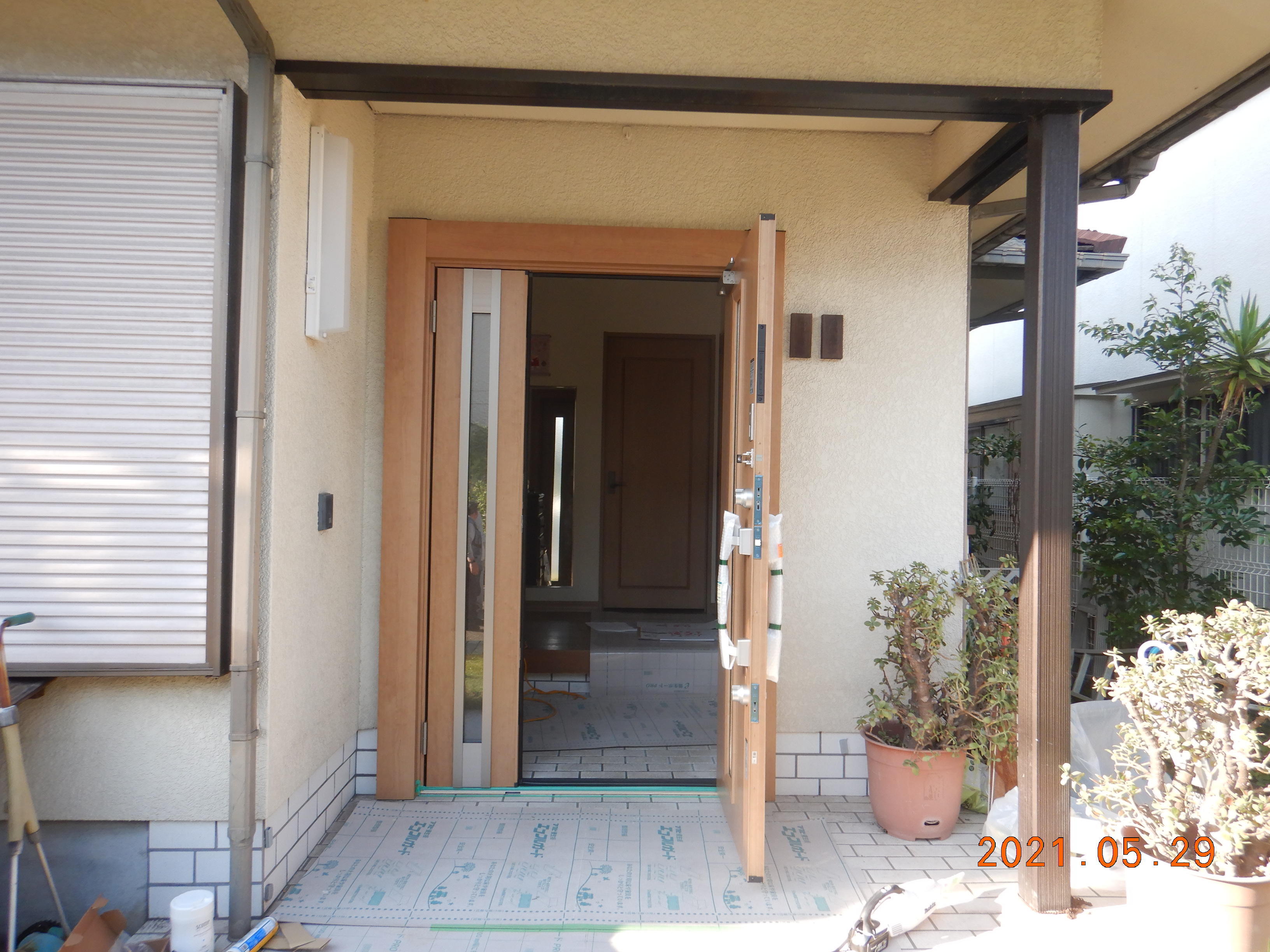 玄関扉撤去⇒新たな玄関を取付