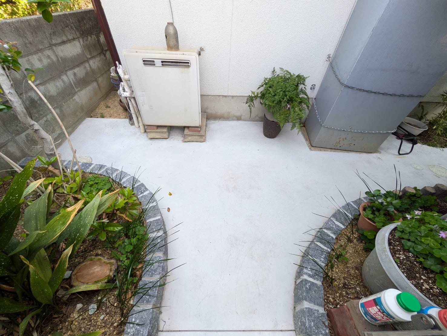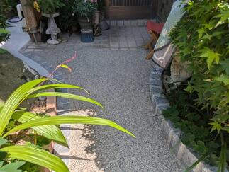 ・門扉の入替をしました。 (LIXIL) AB TR1型 ・ブロック工事 花壇を新調し、・洗い出しの縁取りも行いました。 ・コンクリート工事 車庫や通路をコンクリートにしました。 ・植栽処分 一部植栽を整え、通路を確保しました。