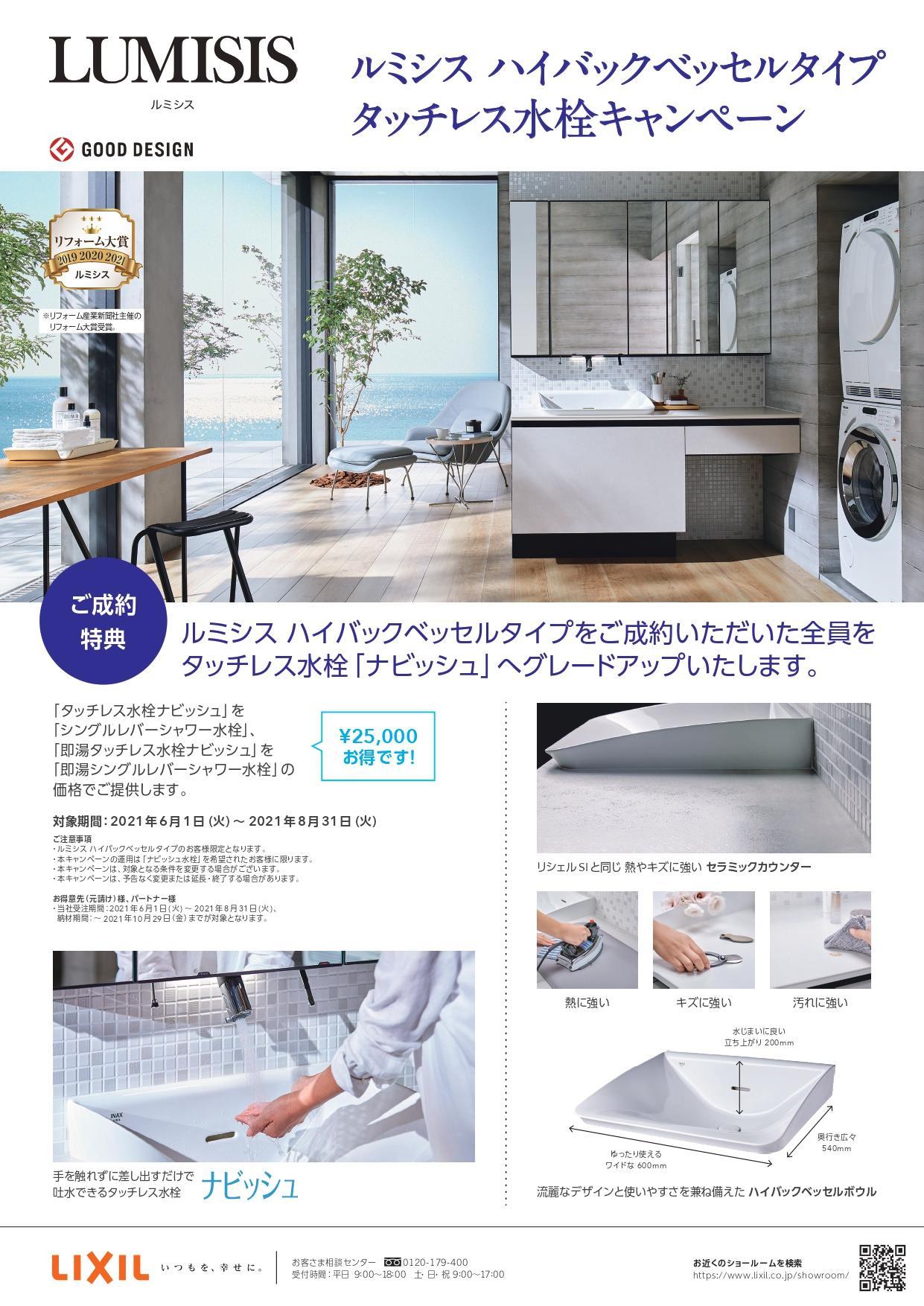 タッチレス水栓「ナビッシュ」へグレードアップ致します。