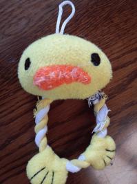 一時間後には、あひるちゃんの鼻を見事噛みちぎり、中の綿をカジカジしていました (;一_一)