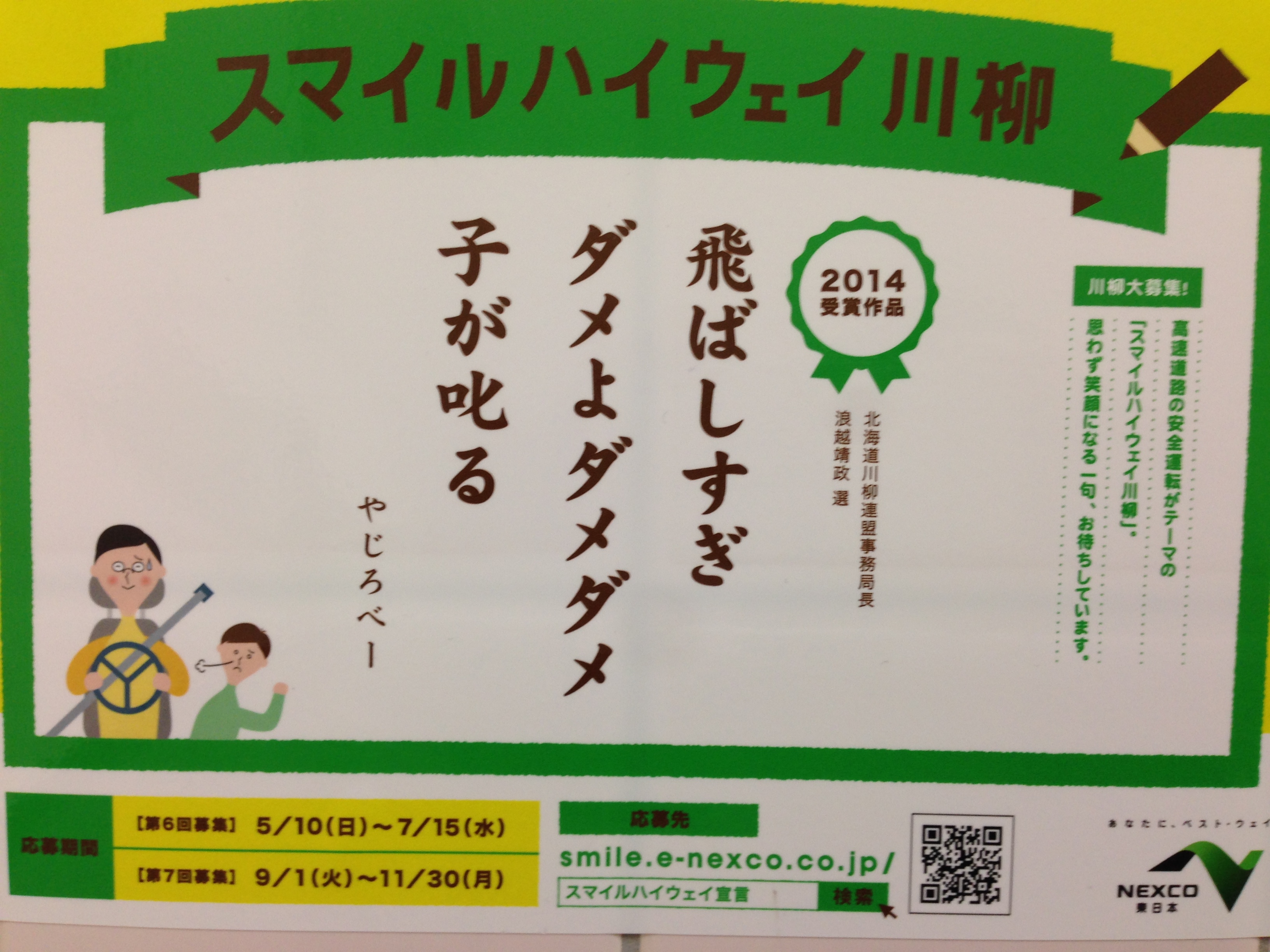 そして高速のお手洗にスマイルハイウェイ川柳なるものが貼ってあり思わず吹き出したので皆さんにも見ていただきたいので添付しまーす。
