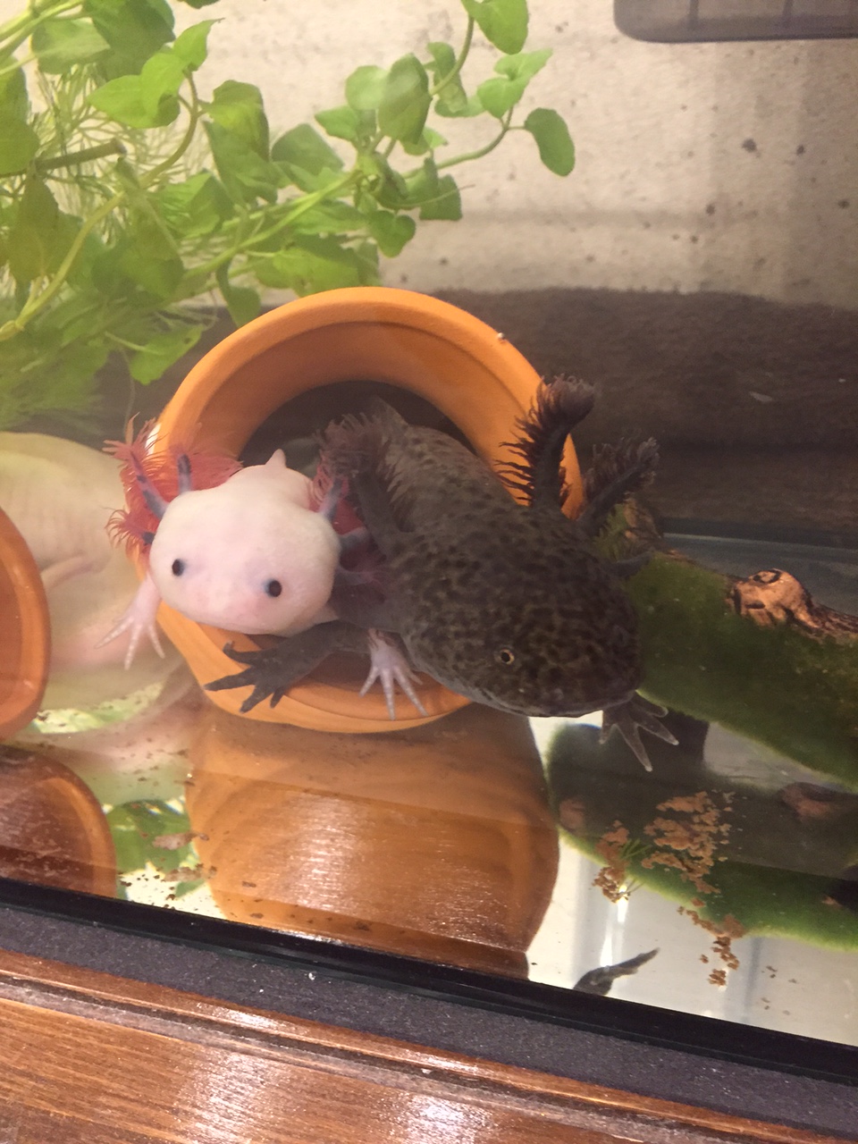 ふと水槽を見てみると、ウパちゃんとウーたんが一緒に壺に。。。(笑)