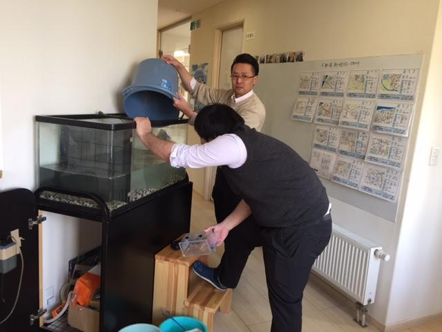 そんな寒い季節にリフォーム部に水槽掃除のお当番が回ってきましたーーーー。
