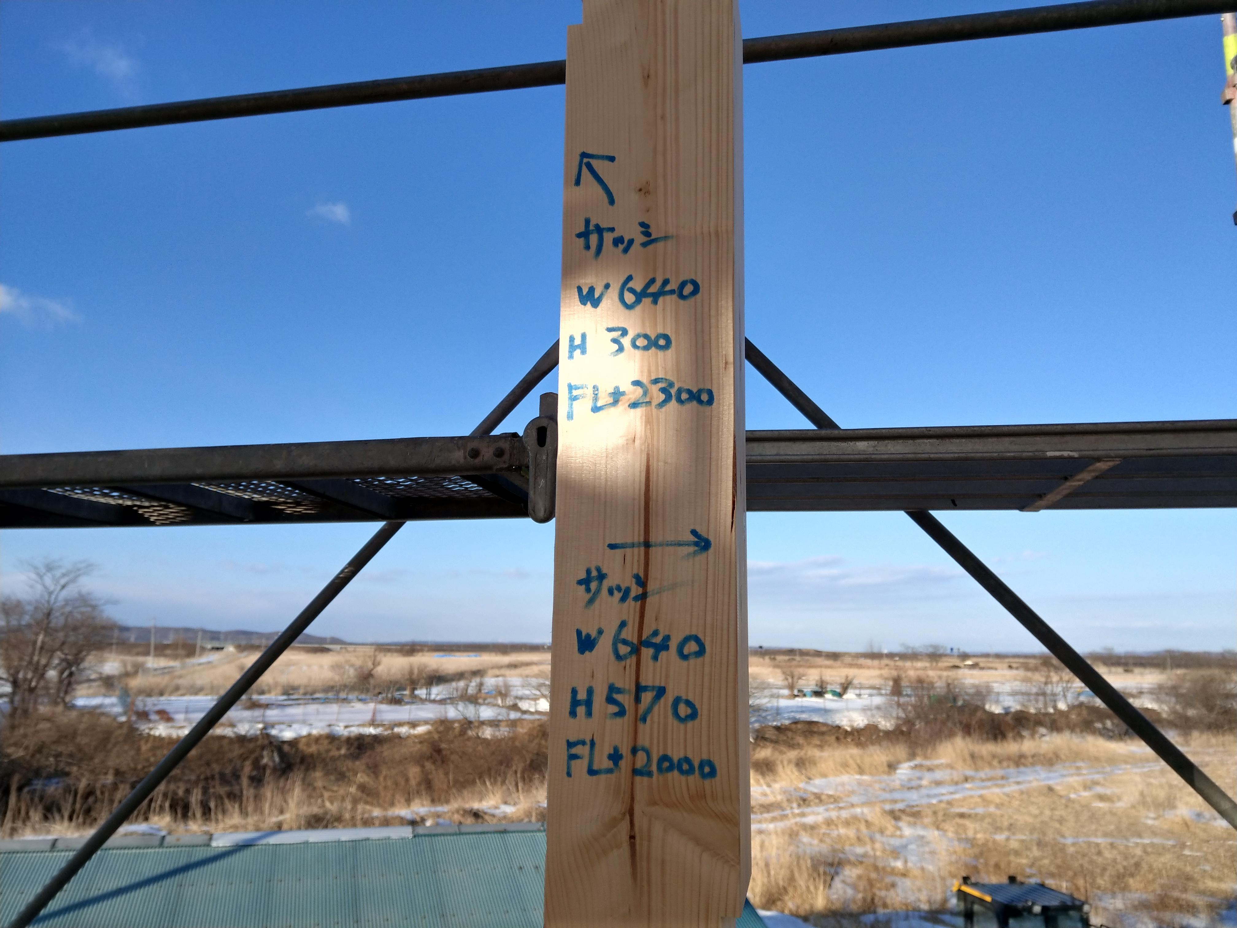 今日は現場に行って、大工さんと打合せ、墨出しをしてきました。