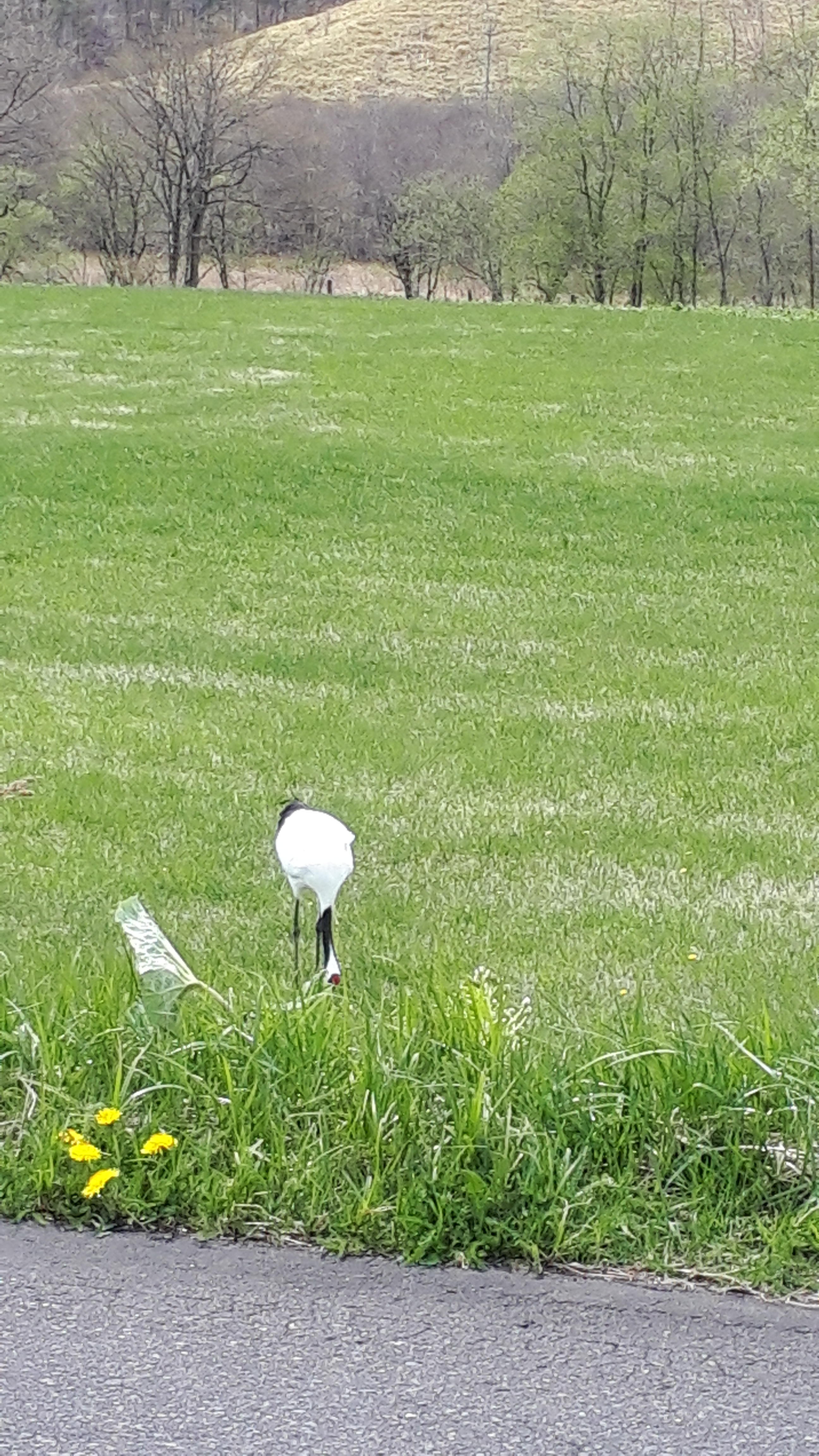 近くに車を止めて車内から撮影させてもらいました。私の事を気にせずゆうゆうと草を食んでいます。癒されました。(*^_^*)