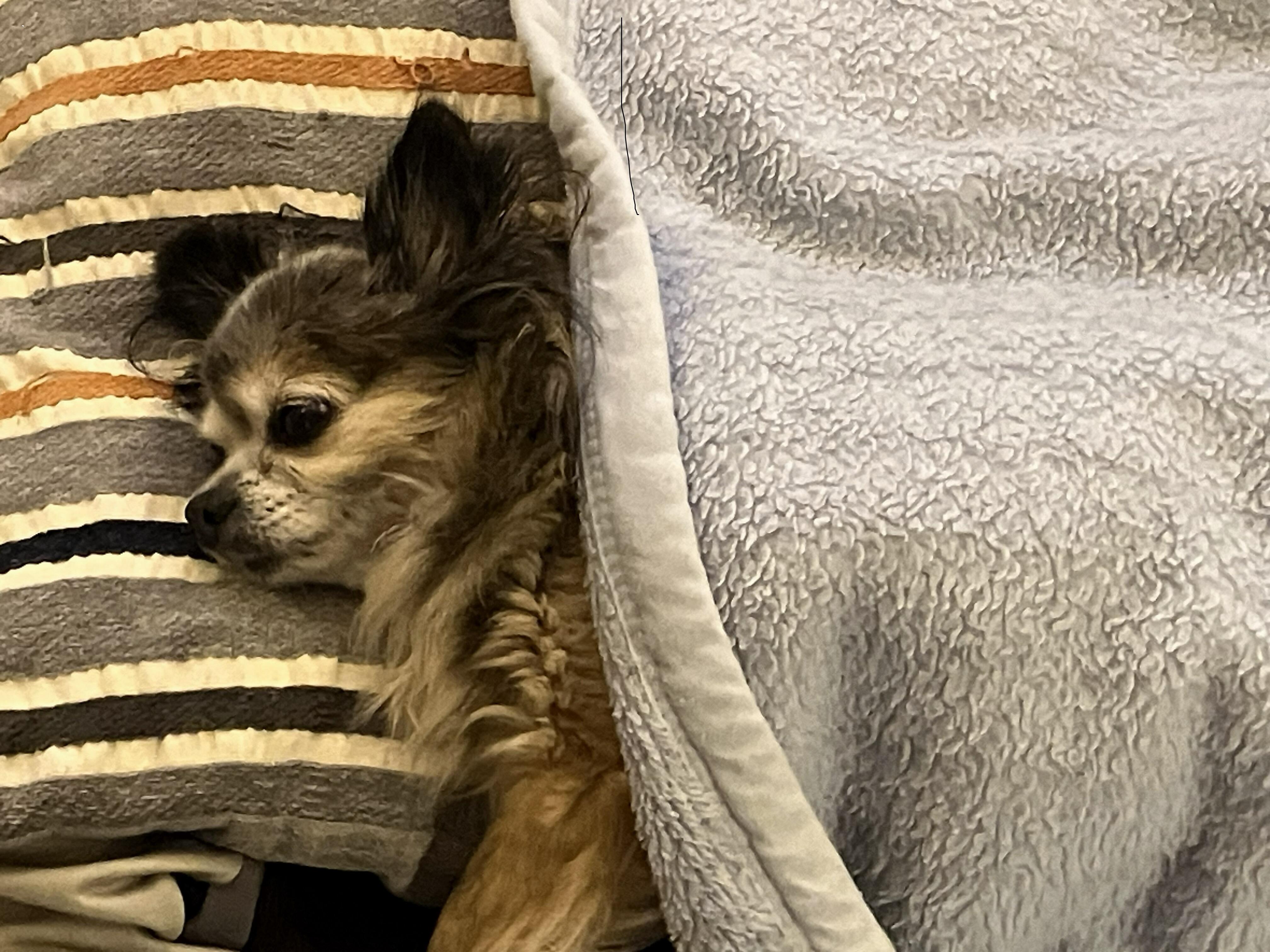 我が家の愛犬は立派な毛皮をまとっているのに、お布団の中でヌクヌク 笑